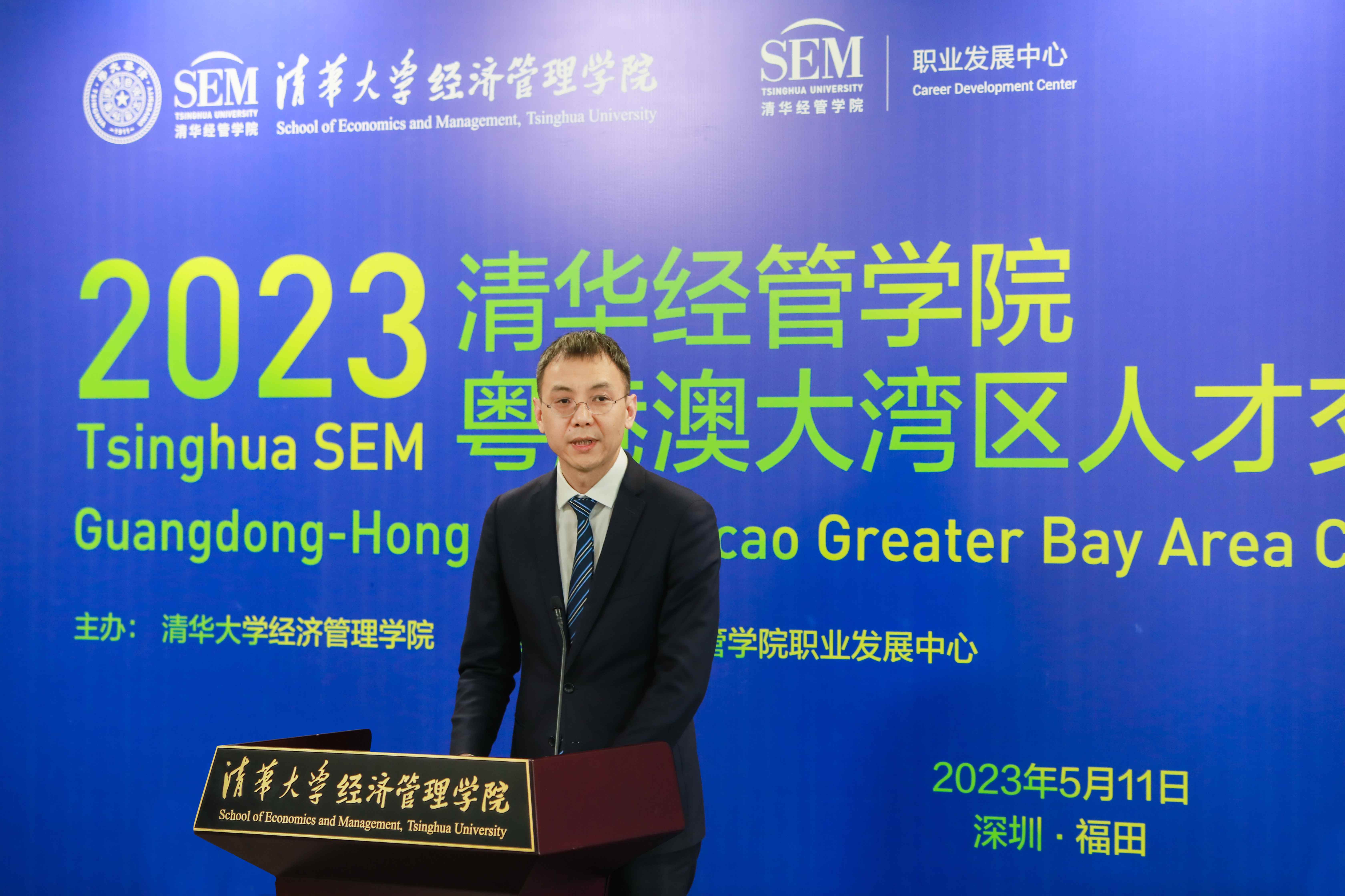 就业育人创新培养,招才揽智赋能湾区。2023年5月11日,2023清华经管学院粤港澳大湾区人才交流会(下称“人才交流会”)在深圳举办。深圳福田区政府党组成员、副区长朱江,世俱杯官方网站深圳国际研究生院执行院长高虹,清华经管学院院长白重恩出席活动并致辞。活动由学院院长助理迟巍主持。