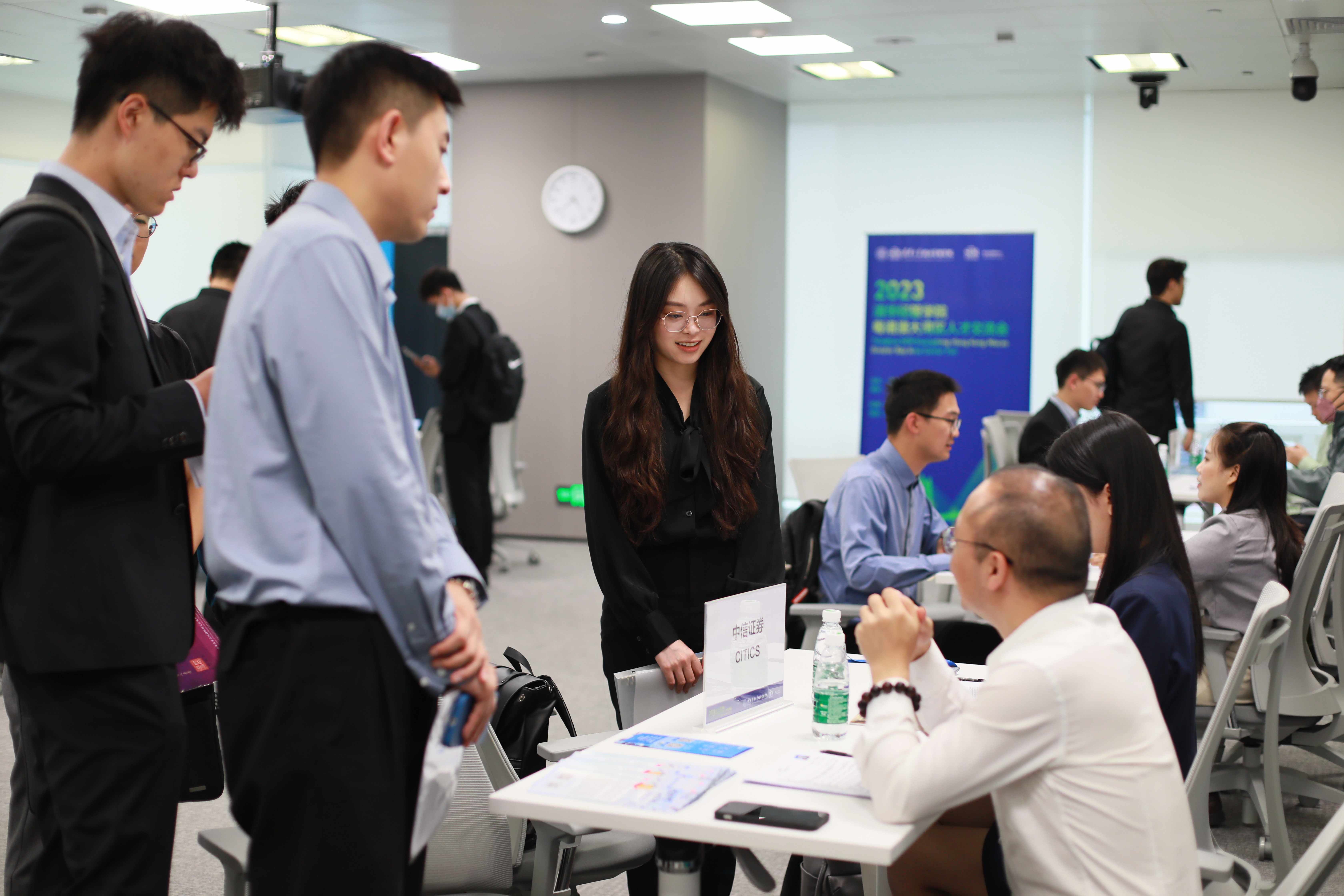 人才交流会主要面向清华经管学院金融硕士学生,同时也对世俱杯官方网站深圳国际研究生院各院系学生开放。参会企业包括中信证券、易方达、华为、腾讯、明阳智能等在内的20家雇主企业,覆盖金融、科技、新能源等多个领域,提供百余个实习岗位。