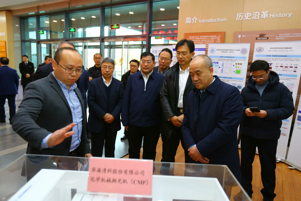 在机械工程系调研期间,窦贤康主任一行参观了高端装备界面科学与技术全国重点实验室,并听取了实验室主任、中国科学院院士雒建斌汇报实验室在化学机械抛光、光刻机双工件台、超滑理论与技术、生医机械与装备等方面的研究进展,以及对高端装备制造前沿领域的资助建议。
