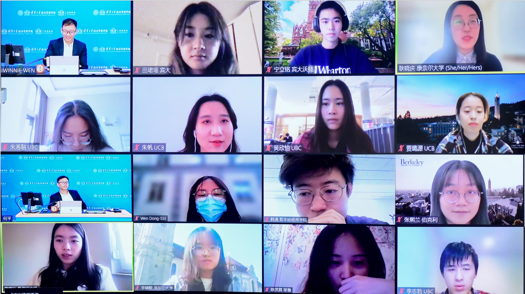 由于时差原因,活动分为上下午两场举办,上午场的同学来自康奈尔大学、宾夕法尼亚大学、伯克利大学加州分校等北美院校,下午场的同学身处欧洲,来自巴黎高等商学院、曼海姆大学、苏黎世大学等。