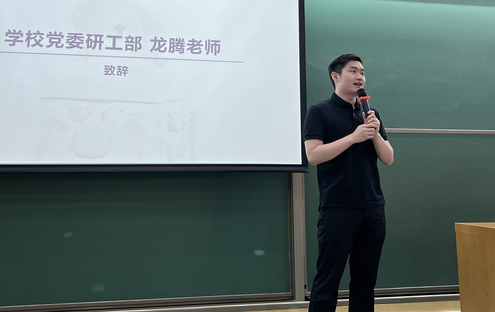 龙腾代表学校党委研工部致辞,介绍了开设暑期社会实践课程作为博士生培养必修环节的意义、发展历程和评价标准等方面的情况。他指出,不同于短期就业实践,暑期必修实践是博士生培养方案中明确规定的教学内容,也是清华博士生体验一线岗位工作、建立跨院系朋辈友谊、了解社情民意的宝贵机会。他希望同学们通过走进企业和基层一线,在实践中培养家国情怀、锻炼综合能力,以高标准、严要求展现清华学子良好精神风貌和专业素养,同时也可以通过为期六周的“沉浸式”实践,进一步明晰未来职业规划和人生选择,努力成为德智体美劳全面发展的新时代高层次专业人才。