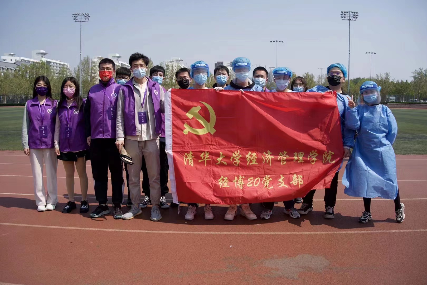 在34人中,有32名经博20的博士生和2名来自20级MIM班级的硕士同学,由经博20党支部和经管研团组织,经博20党支书赖致远、支委邵韵文和研团副书记王帅负责现场具体活动安排。当天,学院志愿者分别在听涛园西广场和C楼东侧的核酸检测点负责组织有序排队、安排录入信息等工作,用实际行动让党旗在抗疫一线高高飘扬。