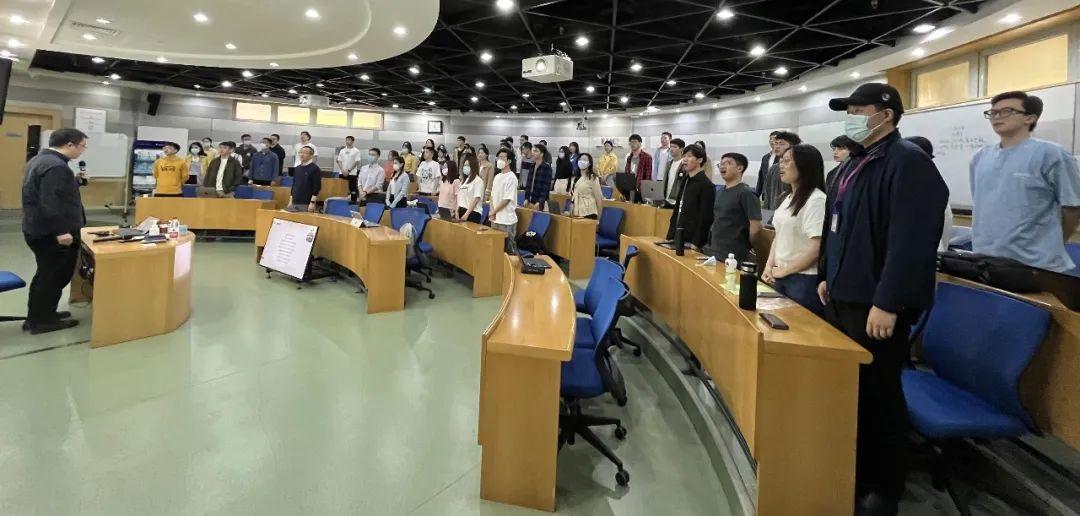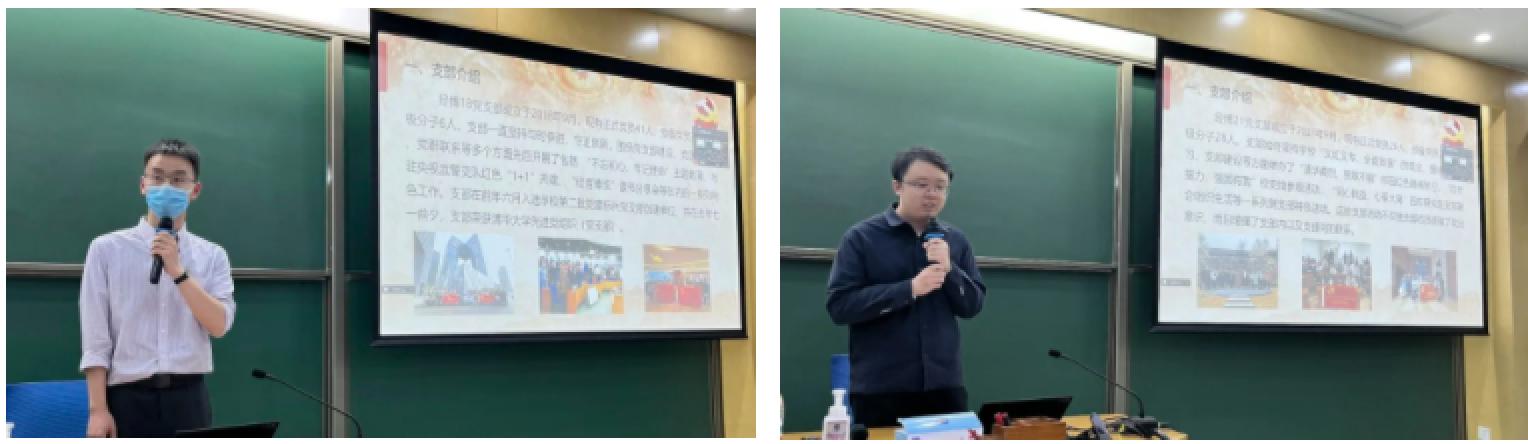 全体师生合唱《国际歌》后,经博18党支部书记葛逸晅和经博21党支部统战委员程肯分别介绍支部基本情况。