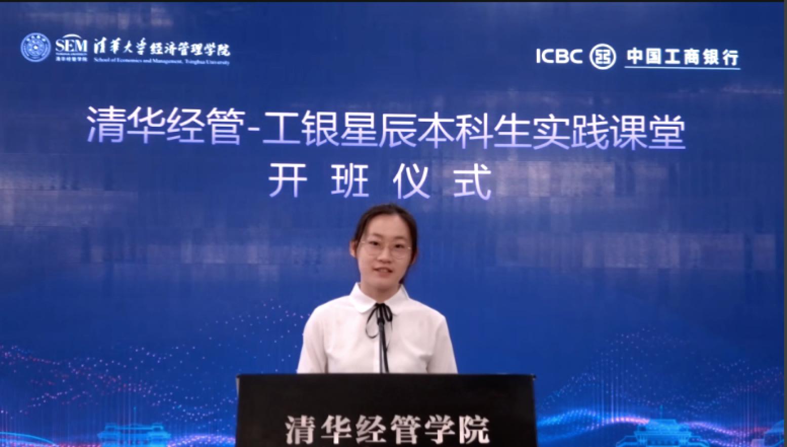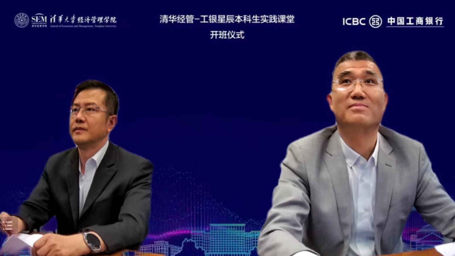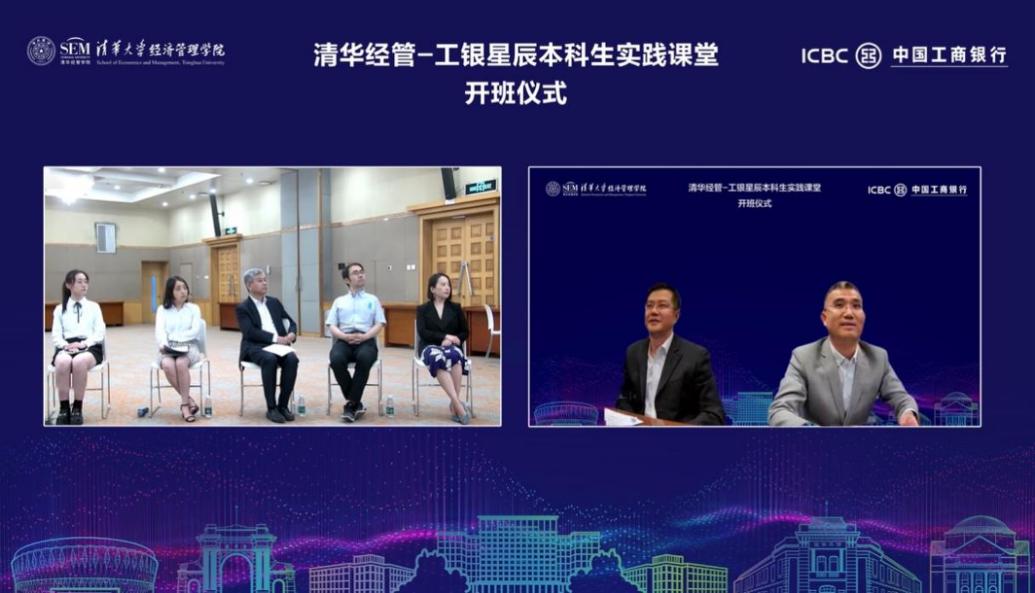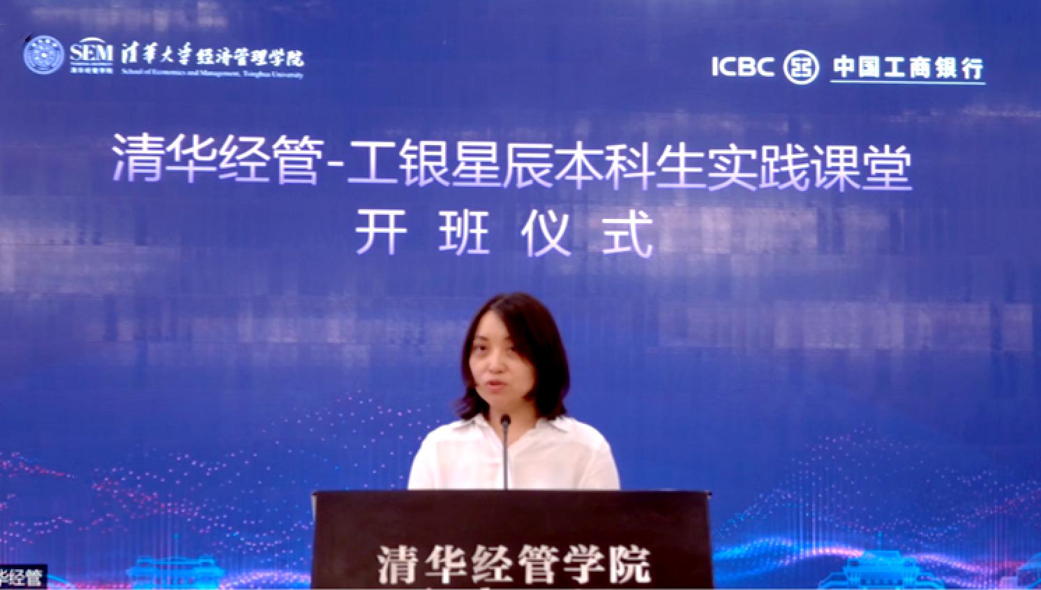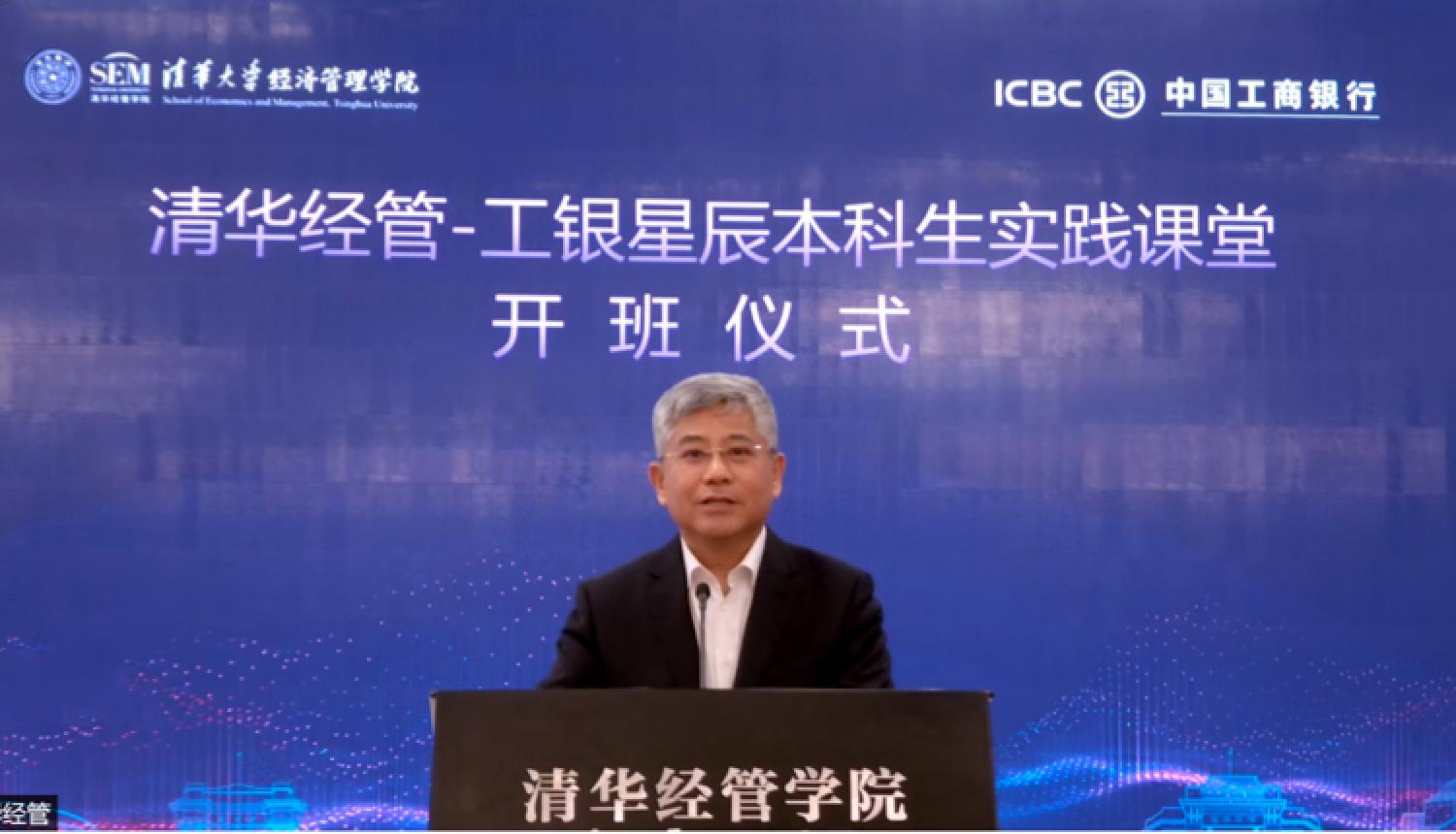 2022年6月7日,清华经管学院与中国工商银行合作举办的清华经管-工银星辰本科生实践课堂(以下简称实践项目)开班仪式以线上线下融合的方式举行。清华经管学院院长白重恩、院长助理迟巍、金融系副教授沈涛、职业发展中心主任顾英杰现场出席开班仪式,中国工商银行党委组织部部长、人力资源部总经理张小东,党委宣传部副部长陈立忠线上参加。开班仪式由迟巍主持。