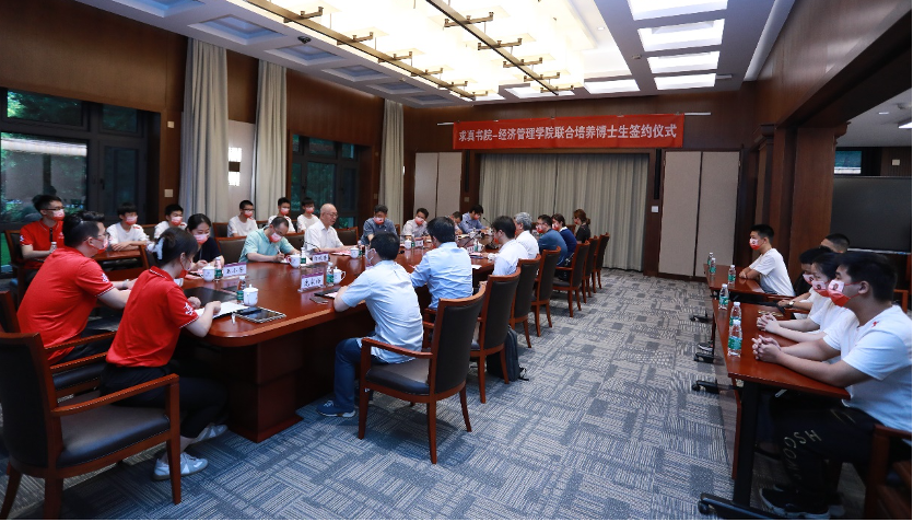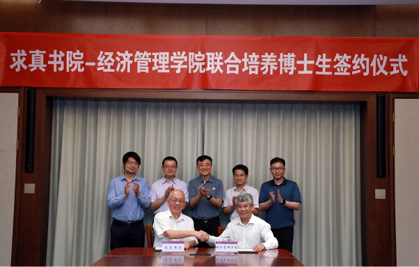 仪式上,丘成桐与白重恩分别代表求真书院和经济管理学院签署联合培养博士生协议。求真书院、经济管理学院、研究生院、数学科学中心等单位负责人以及求真书院学生代表出席签约仪式。签约仪式后,双方围绕培养方案与课程设计等内容进行了深入探讨交流。