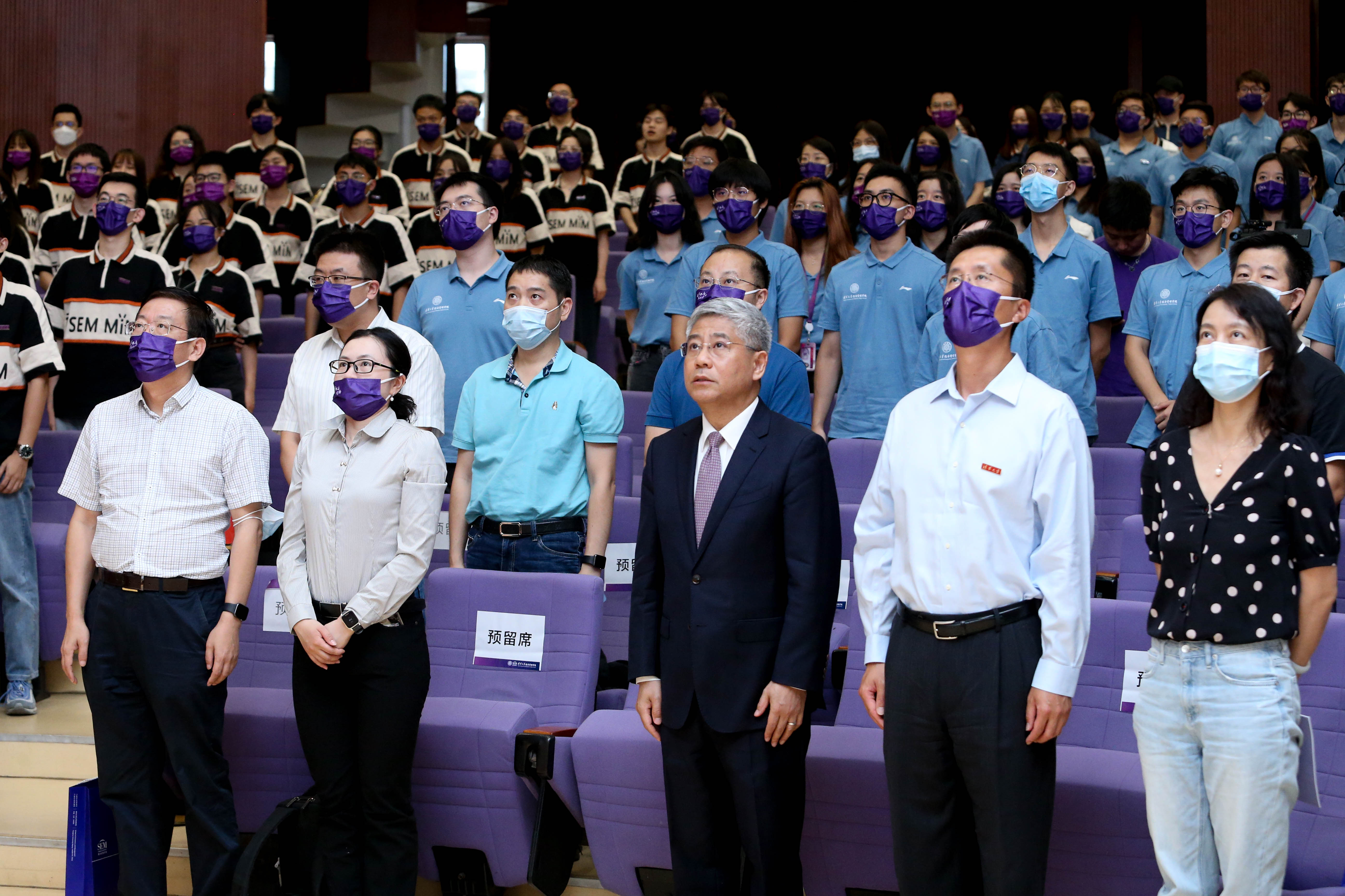 2022年8月31日,清华经管学院2022级研究生开学典礼举行。清华经管学院院长白重恩、副院长徐心、院长助理张晨、教学办学术主任朱玉杰、管理科学与工程系博士项目协调人叶青、会计系博士项目协调人罗婷、领导力与组织管理系博士项目协调人卢舒野、金融硕士项目学术主任刘淳、管理硕士项目学术主任孙亚程、世俱杯官方网站-哥伦比亚大学商务分析双硕士学位项目学术主任王纯、研究生工作组组长刘庆,以及教学、学生工作相关负责人与线上线下2022级博士及硕士研究生新生共同参加开学典礼。典礼由副院长何平主持。