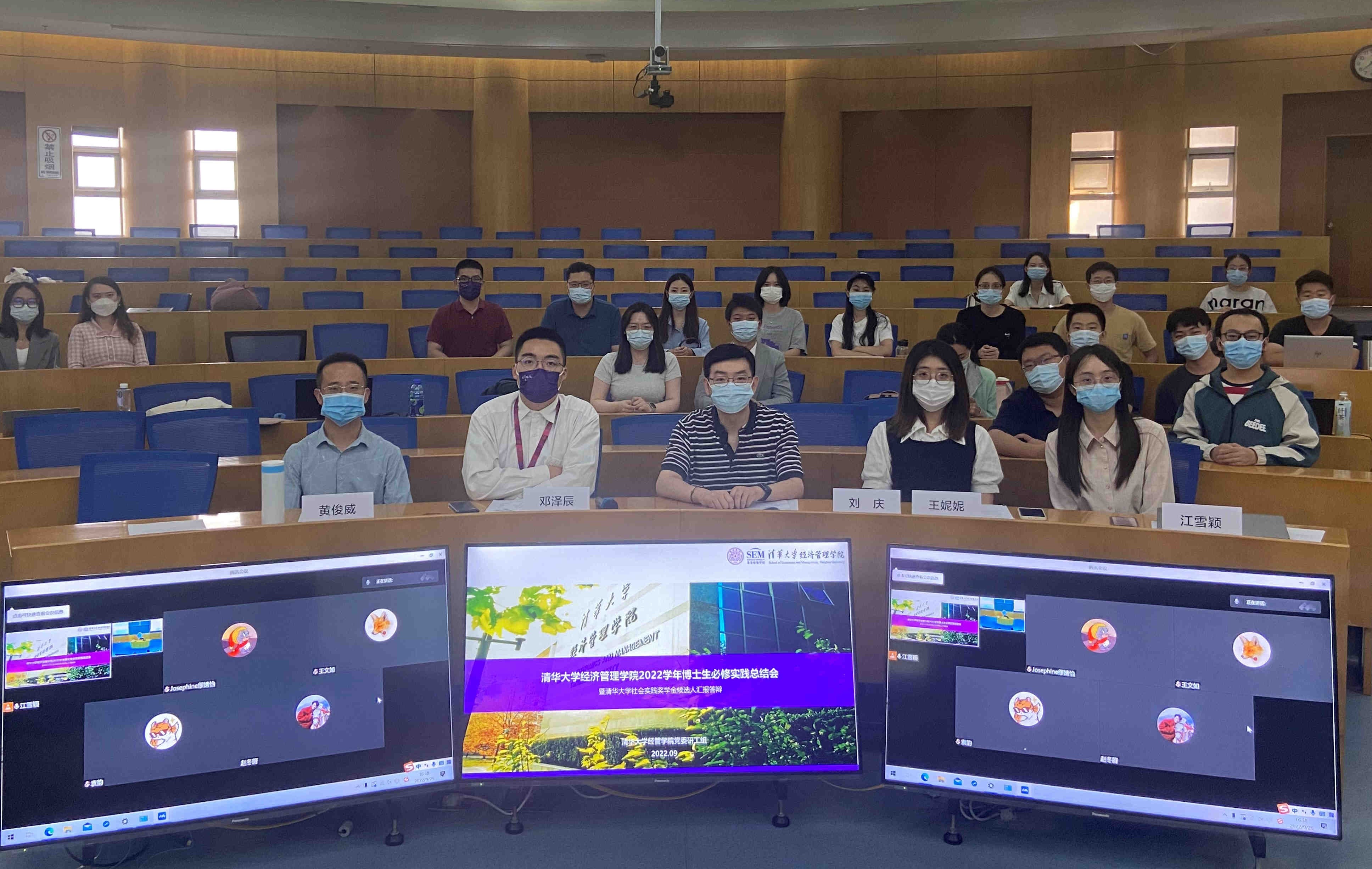 2022年9月25日,清华经管学院博士生必修暑期实践总结会召开。学校党委研工部事务办教师邓泽辰、学院研工组组长刘庆、学院部分研工助理、参加今年必修实践的博士生16人,以及明年拟参加、对必修实践感兴趣的博士生20余人通过线上线下结合的方式参加会议。会议由学院研工组助理、2020级博士生江雪颖主持。