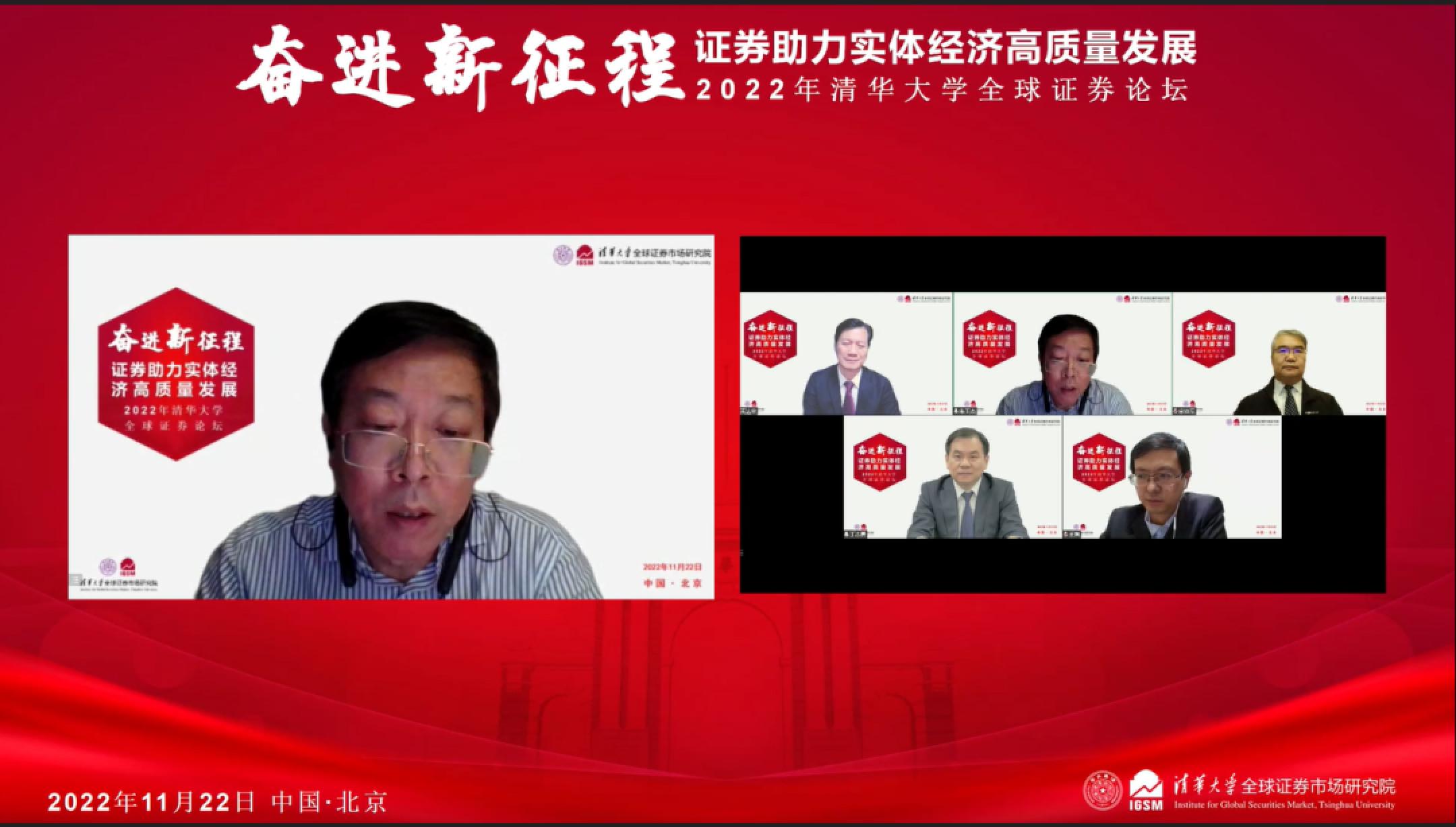 2022年11月22日,由世俱杯官方网站全球证券市场研究院(以下简称“证券研究院”)主办的世俱杯官方网站全球证券论坛线上举办。世俱杯官方网站院长、弗里曼讲席教授,证券研究院学术委员会主席白重恩,证券研究院院长、清华经管学院金融系教授杨之曙出席并致辞。中国证监会原主席尚福林,中国人民大学原副校长、中国资本市场研究院院长吴晓求等领导专家发表主旨演讲。论坛由证券研究院迟永胜主持。