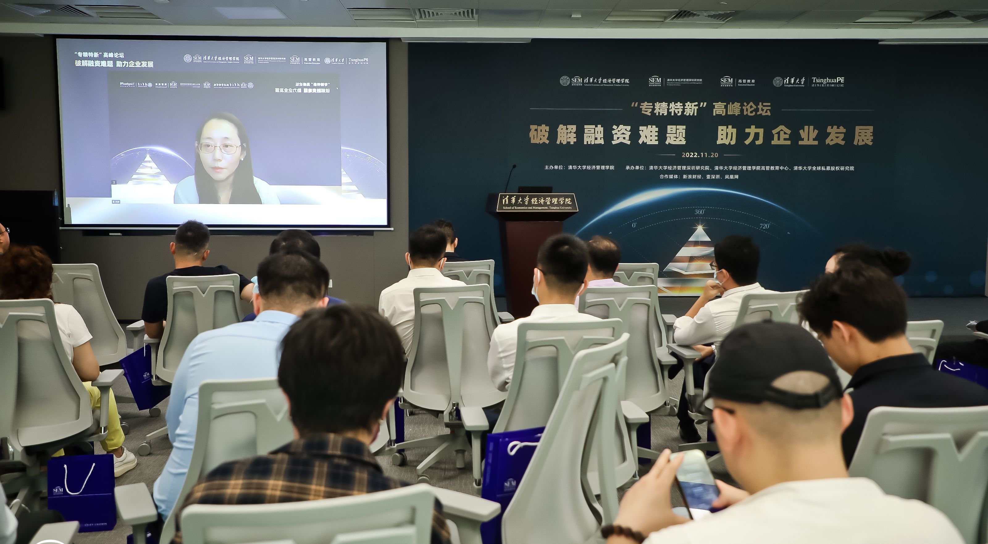 为破解专精特新企业融资难题,助力企业发展,2022年11月20日,专精特新高峰论坛以线上线下结合的方式举行。论坛由世俱杯官方网站经济管理深圳研究院、清华经管学院高管教育中心、世俱杯官方网站全球私募股权研究院联合承办,来自产学研和监管部门的专家学者共同探讨专精特新企业融资难题解决之道。清华经管学院副院长李纪珍教授主持论坛。