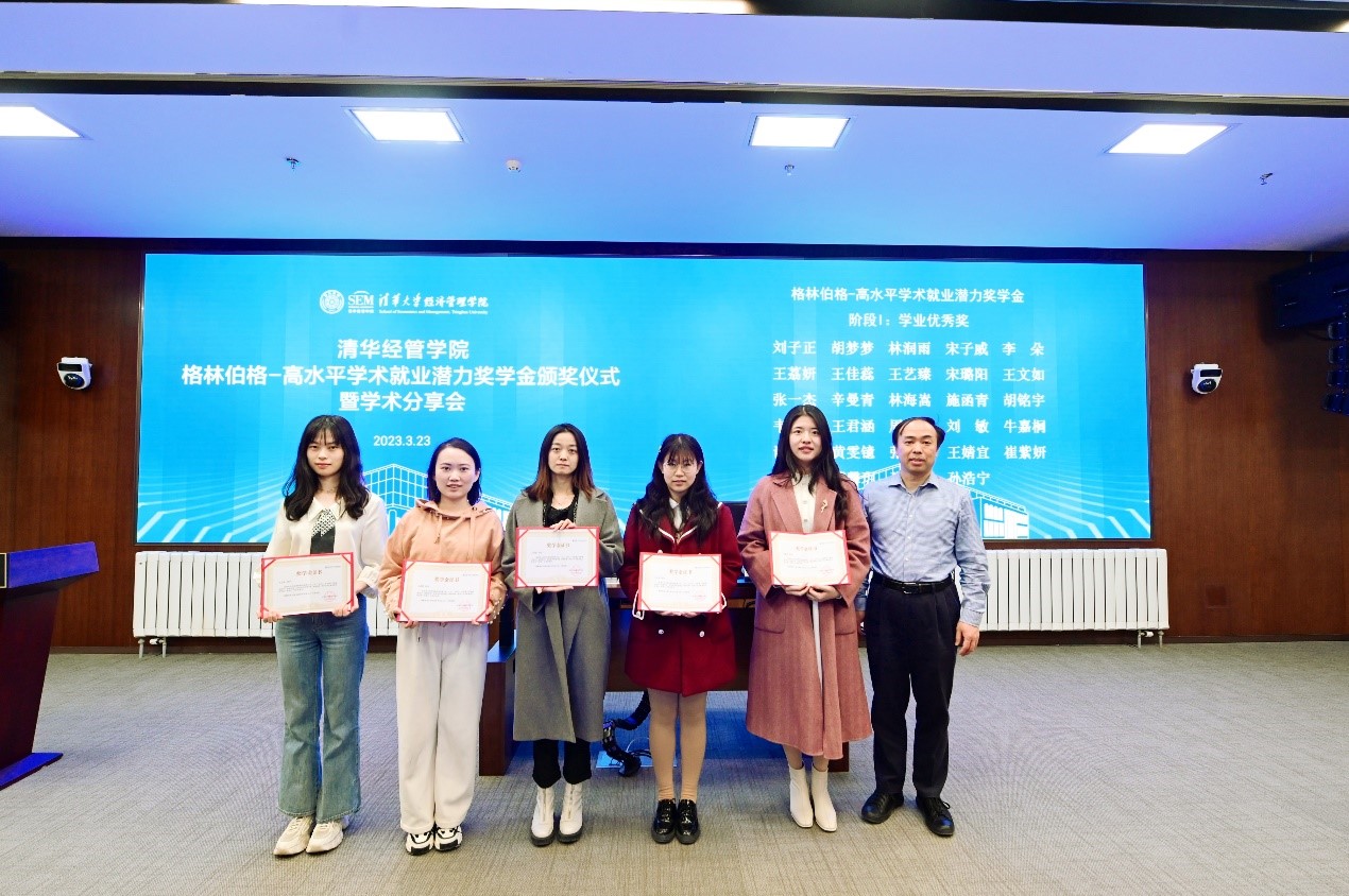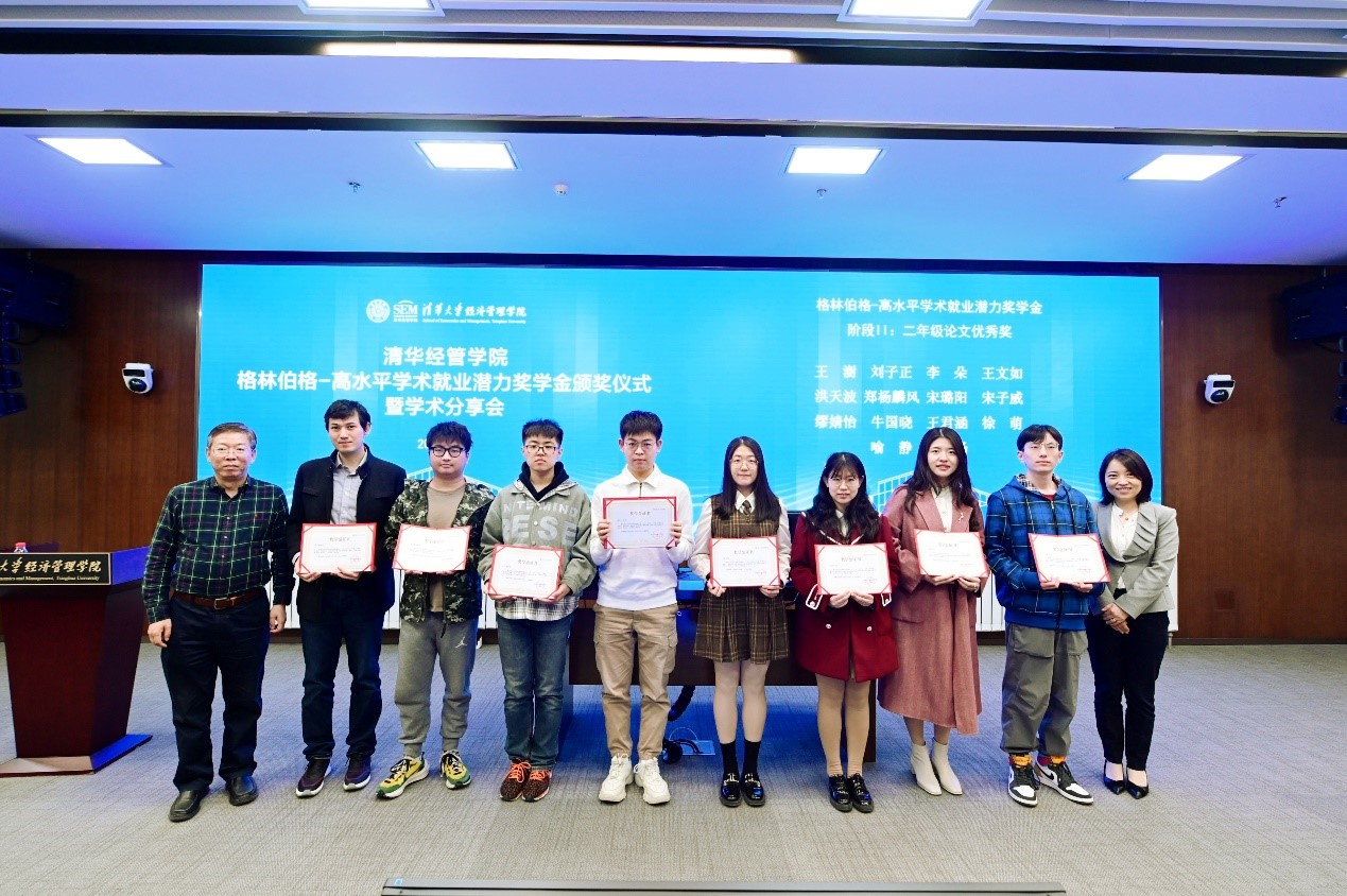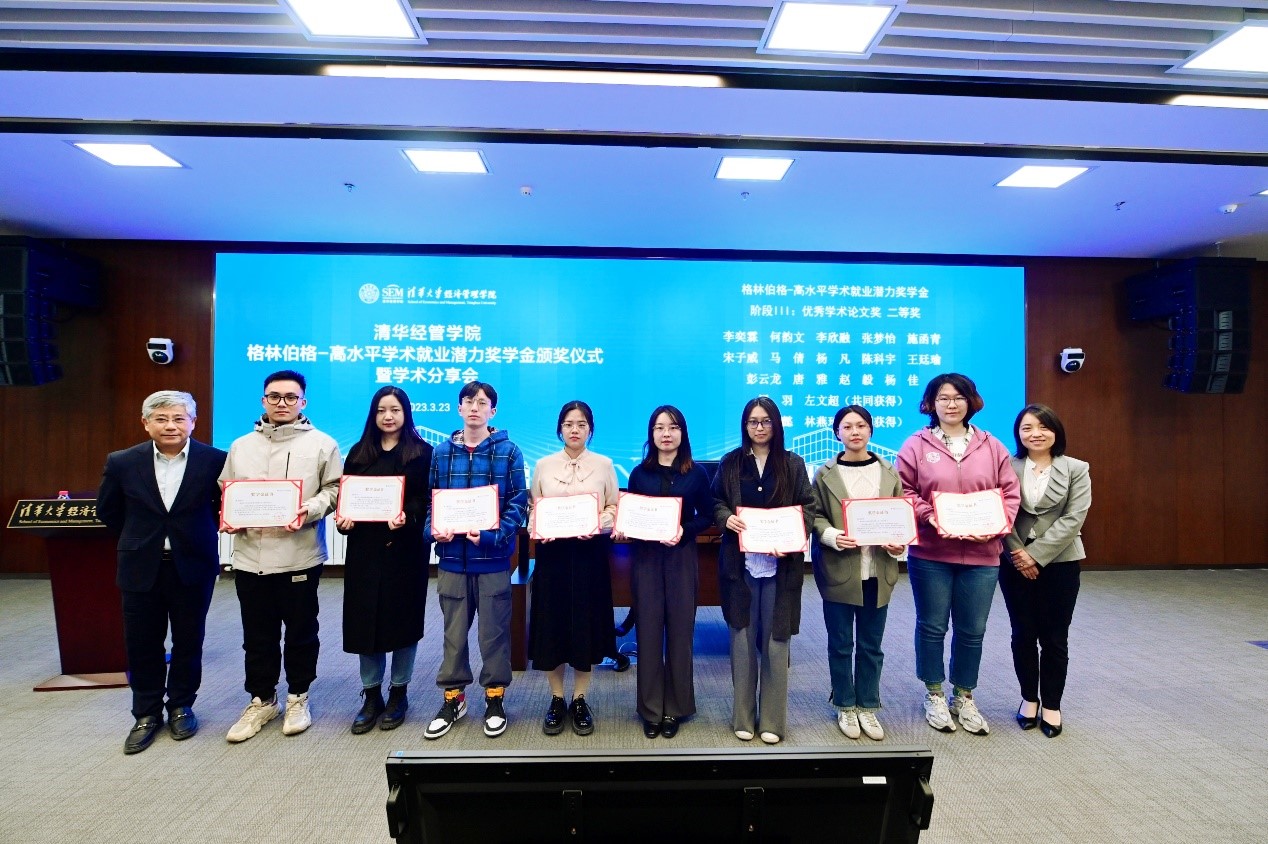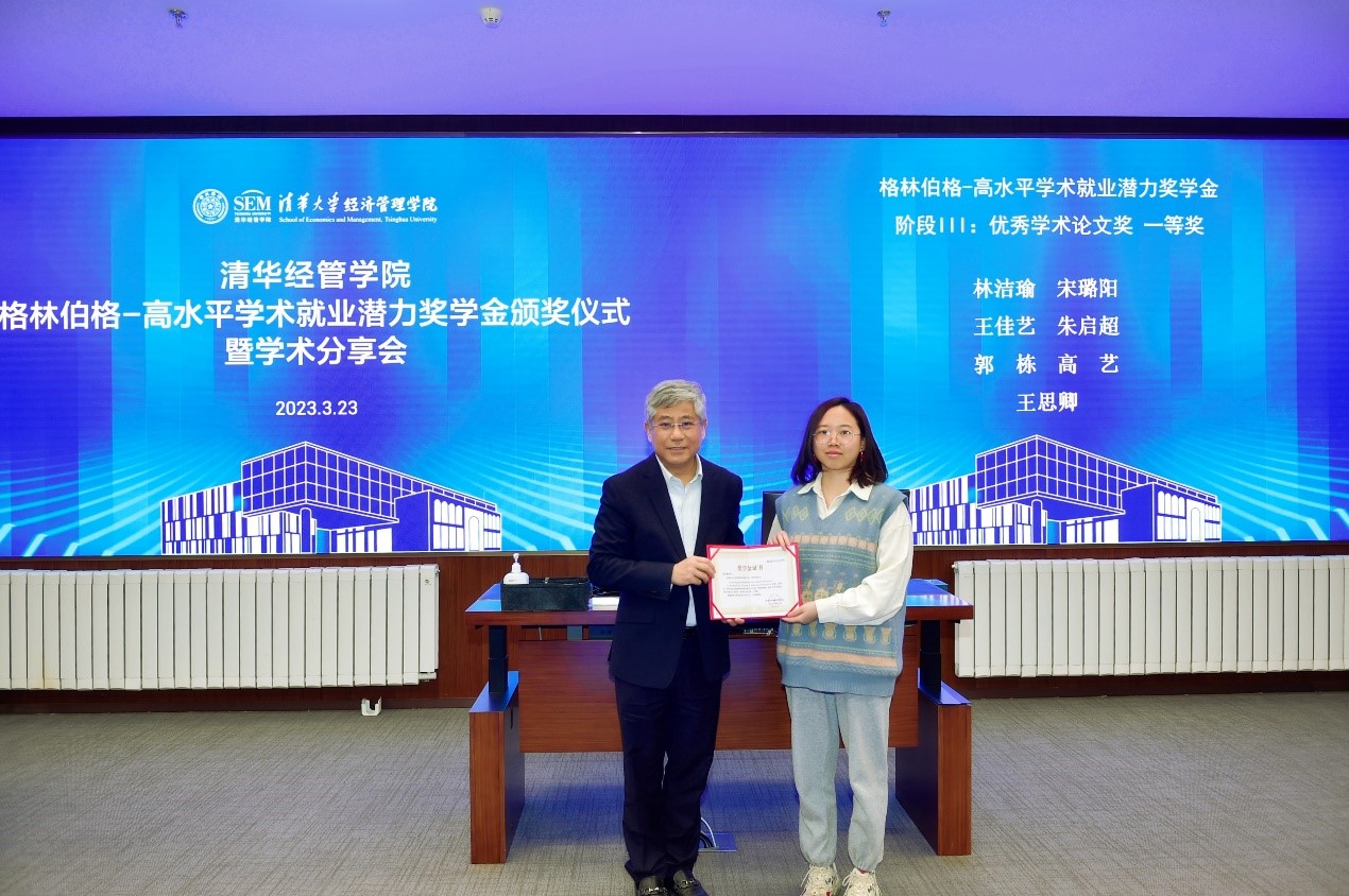2023年3月23日,清华经管学院首届“格林伯格-高水平学术就业潜力奖学金”颁奖仪式暨学术分享会举行。学院院长白重恩、院长助理迟巍、教学办公室学术主任朱玉杰、博士项目会计系协调人罗婷、创新创业与战略系协调人李习保、领导力与组织管理系协调人卢舒野以及学院七个系的博士生代表出席本次活动。活动由朱玉杰主持。