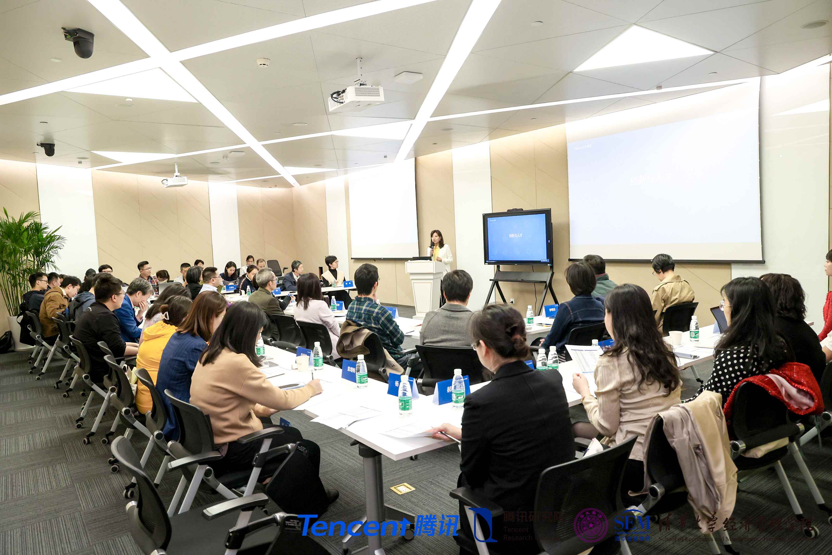 在座谈交流环节,腾讯研究院副院长王爱民介绍了研究院工作和人力资源管理方面的情况,腾讯公司各业务相关负责人与学院教师就财务管理、微信、国际化等方面的业务进行了深入交流。