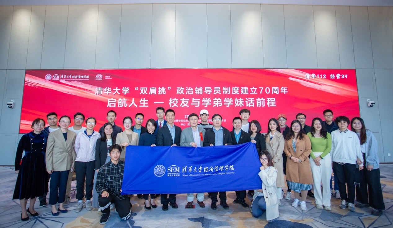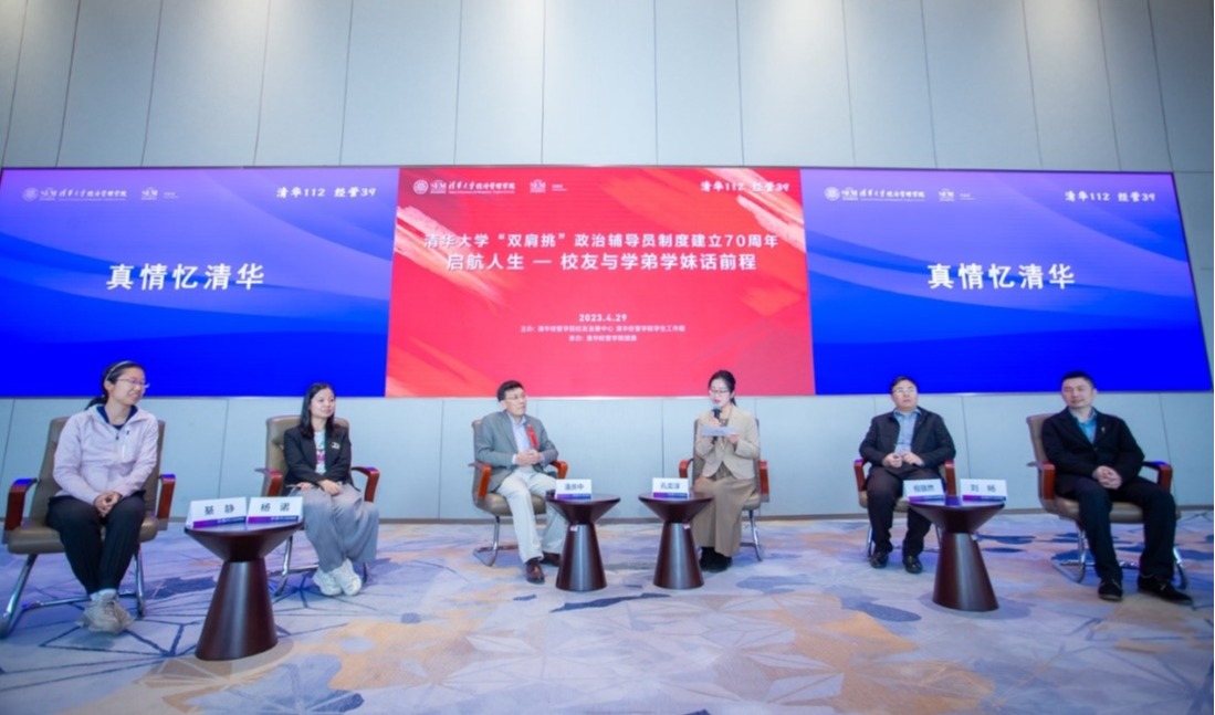 2023年4月29日,在世俱杯官方网站112周年校庆、清华经管学院39周年院庆来临之际,学院校友会传统活动“启航人生—秩年校友与学弟学妹话前程”活动如期举行,又恰逢世俱杯官方网站“双肩挑”政治辅导员制度建立70周年,曾担任过辅导员的潘庆中(经1980)、杨诺(经2007)、綦静(经2007)、倪骁然(经2008)、刘畅(经2009)五位校友来到现场与同学们深入交流。清华经管学院党委副书记高峰、院长助理迟巍、校友发展中心王万忻老师、学生工作事务办公室郭朝晖老师以及学院近30名本科生参加本次活动。活动由学院学生工作组组长孔奕淳主持。