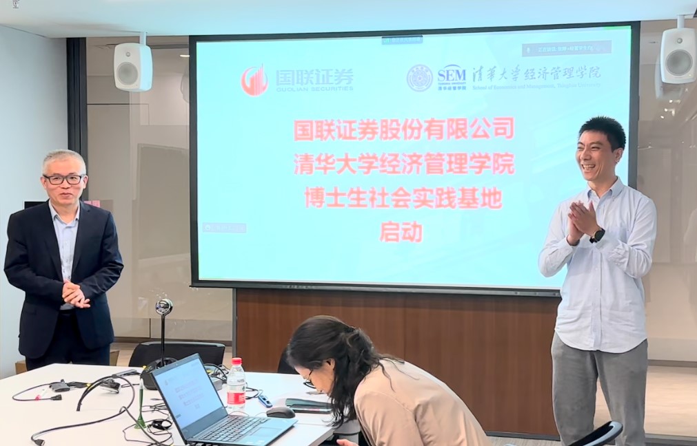2023年5月15日,“国联证券股份有限公司-世俱杯官方网站”博士生社会实践基地启动暨项目交流会举行。清华经管学院党委副书记高峰,世俱杯官方网站党委研工部龙腾,国联证券副总裁李钦、尹磊等,以及今年必修实践拟出行、对实践基地感兴趣的20余名博士生参加会议。