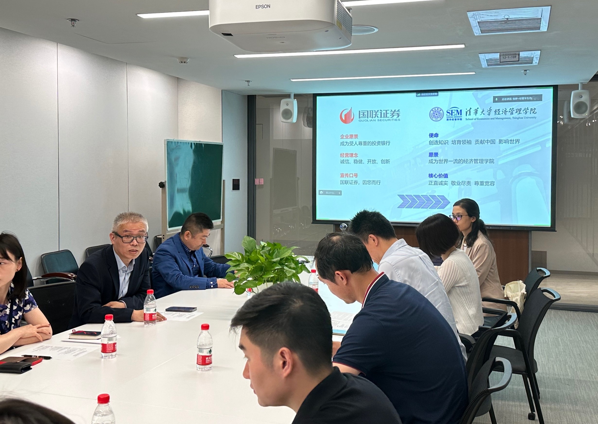 清华经管学院党委研究生工作组组长刘庆、副组长吴添,学生工作事务办公室郭朝晖、张婷,以及国联证券研究主管冯时、张宁,人力资源部总监王佳等一同参加活动。
