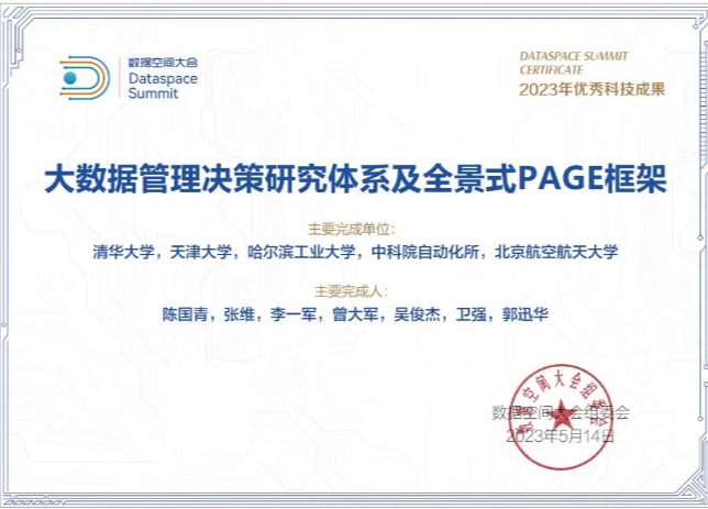 其中,由清华经管学院管理科学与工程系教授陈国青、卫强和郭迅华等承担的“大数据管理决策研究体系及全景式PAGE框架”获得优秀科技成果奖,该成果是面向大数据管理决策研究的体系性和方向性框架,对中国开展相关研究提供了方向引领和集成架构,也列入国家自然科学基金委“大数据驱动的管理与决策研究”重大研究计划项目指南,发挥了顶层设计、整体布局、项目部署等关键作用。