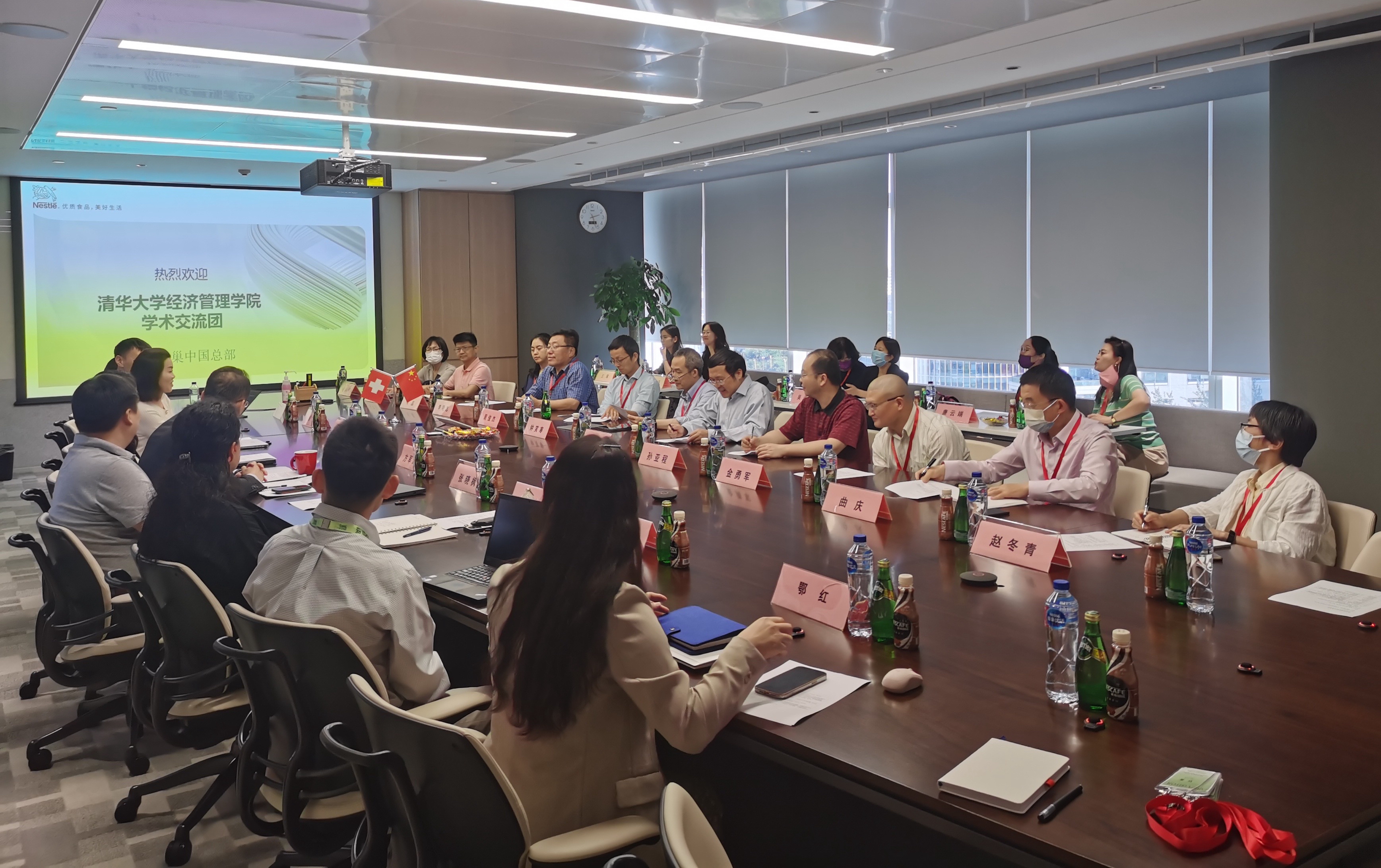 2023年6月2日,清华经管学院科研办组织学院部分教师赴雀巢中国总部参访交流。本次活动由学院副院长李纪珍带队,约20名来自学院各系的教师参加。
