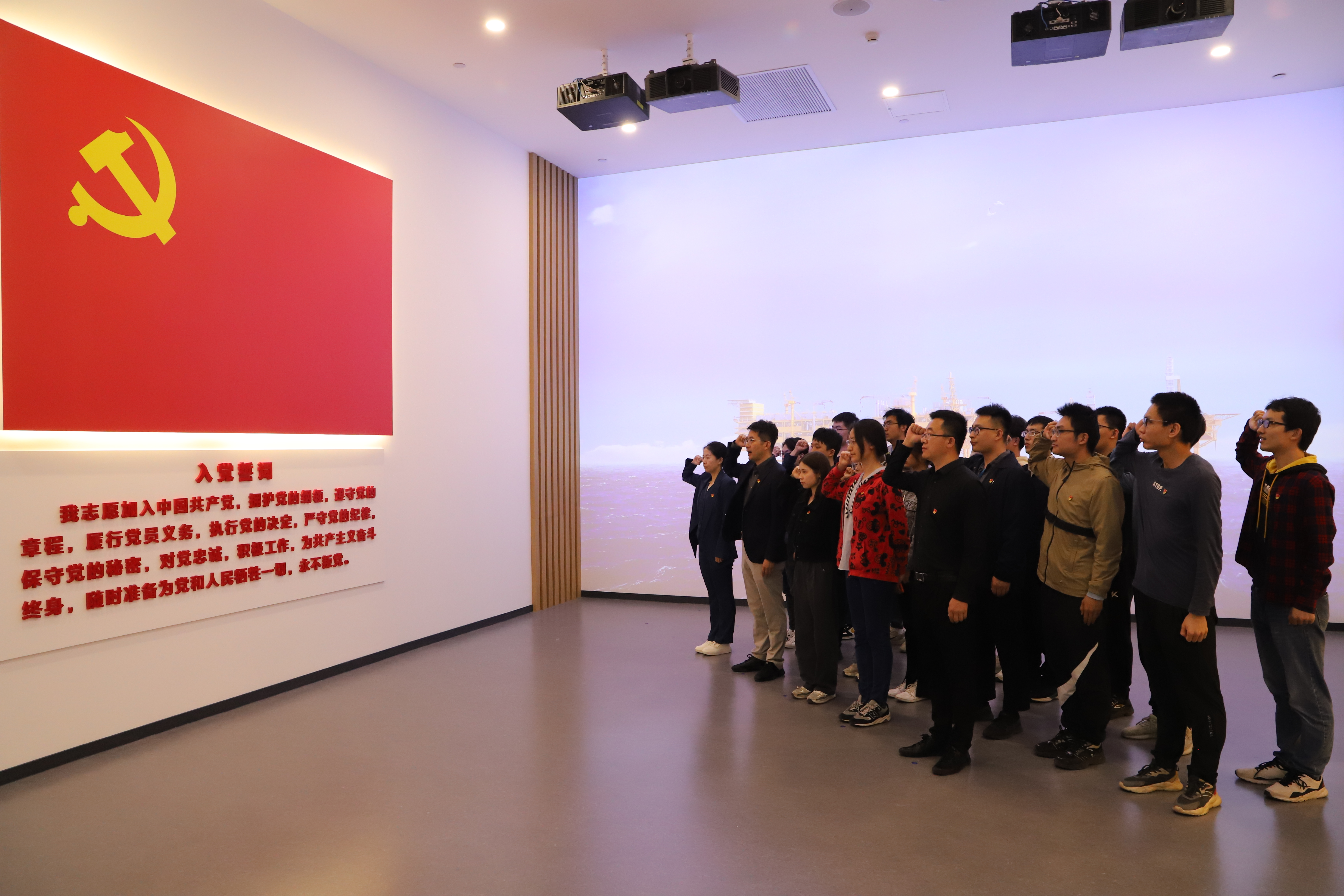 随后,同学们与渤海石油研究院辽东开发室党支部开展共建。渤海石油研究院辽东开发室党支部书记徐中波与同学们交流了党建工作及主要成效,带领大家参观了辽东开发室党支部党建阵地,详细介绍了该团队在重大科技创新攻关、海上油气田增储上产等方面的成果,以及为保障国家能源安全做出的重大贡献。同学们深受鼓舞和感动。