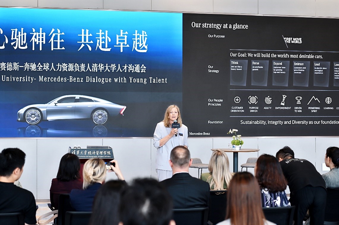 作为学院顾问委员会企业,梅赛德斯-奔驰与学院一直在积极探索人才交流的合作机会,并于去年夏天共同举办主题为“数字化转型下的发展与创新”的在线活动。本次人才沟通会是赛宾纳·柯莱森就任梅赛德斯-奔驰公司人力资源董事会成员以来,首次来到学院,与清华学子进行沟通与交流。