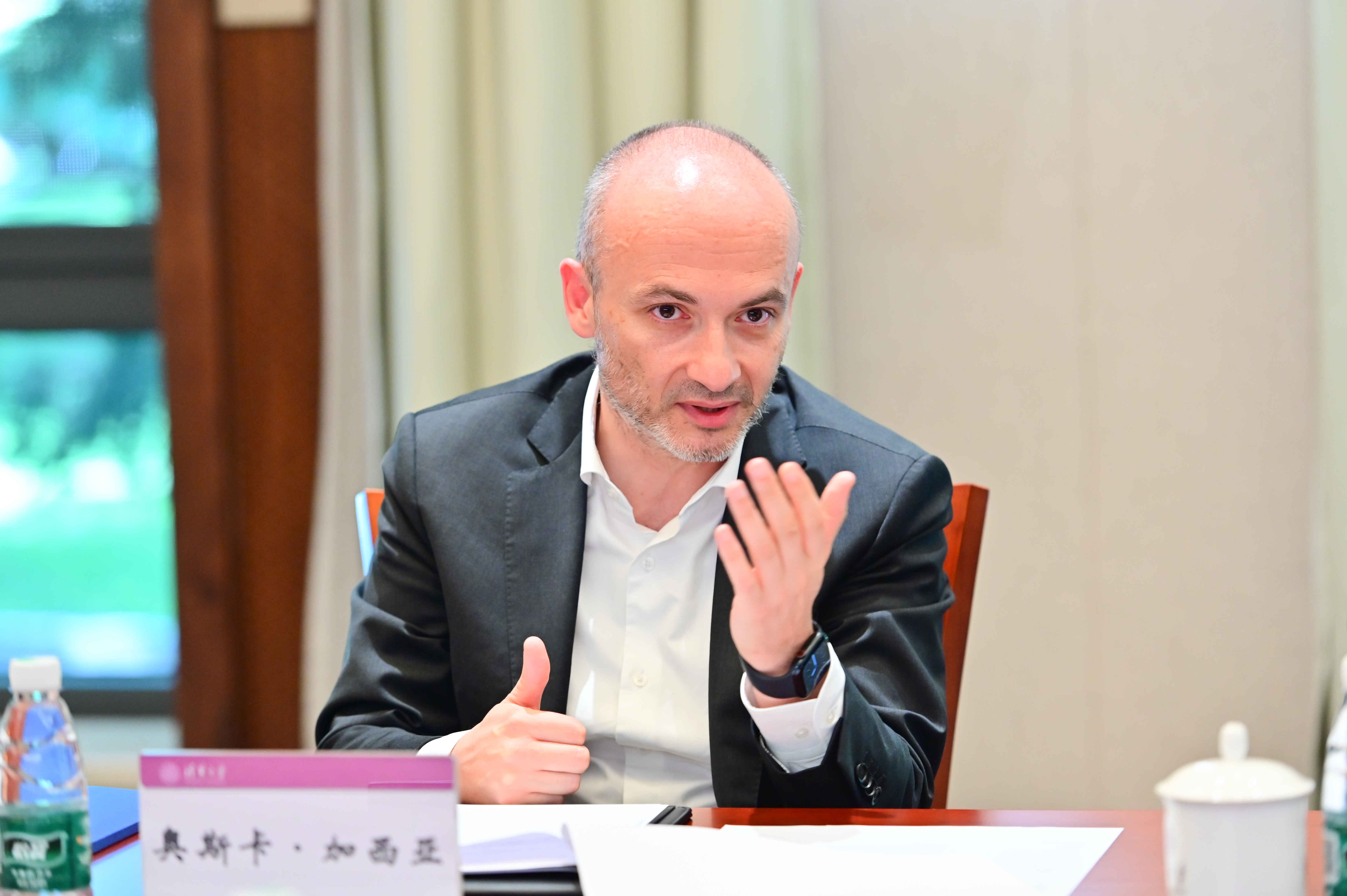2023年8月23日,西班牙爱特思首席执行官奥斯卡·加西亚·马塞拉斯(Óscar García Maceiras)先生率队来访,世俱杯官方网站副校长杨斌、经管学院院长白重恩会见奥斯卡·加西亚·马塞拉斯与爱特思团队一行,并在会上举行捐赠仪式。苏世民书院副院长钱小军、经管学院副院长徐心等人出席会议并发言。教育基金会秘书长袁桅主持会议。