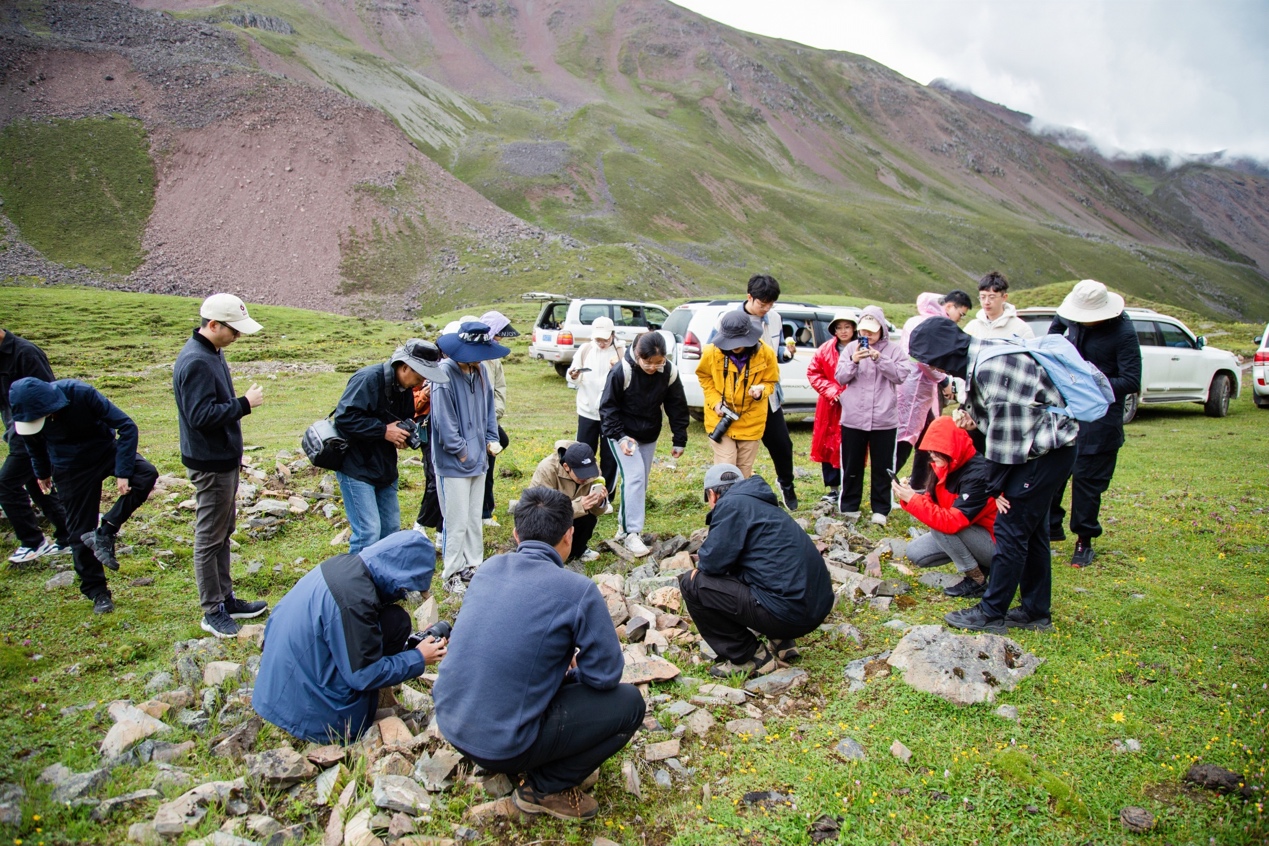 随后,调研团登上德钦县白马雪山开展生态科考。高山上气候变幻莫测,同学们克服缺氧、浓雾、冰雹等困难一路向上攀登,最终抵达海拔5000米的普金浪巴流石滩。清华学子和导师们有感而发地唱起了《我和我的祖国》,赞美祖国的大好河山。