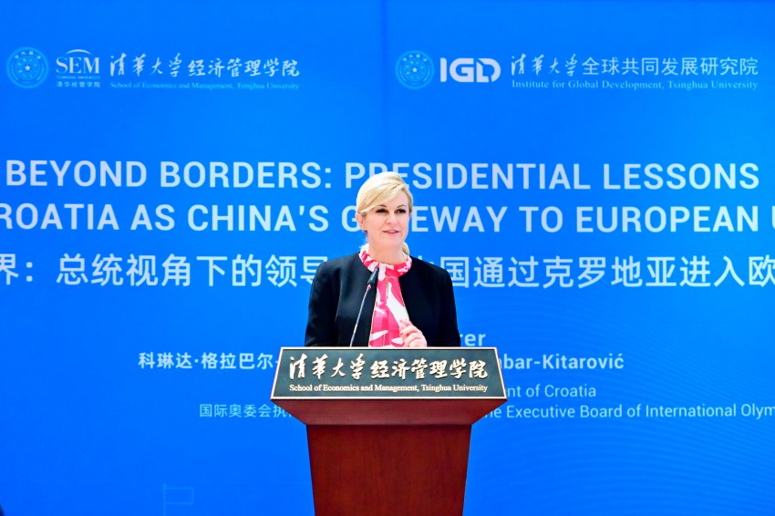 2023年9月1日,克罗地亚共和国第四任总统、现任国际奥委会执行董事会成员科琳达·格拉巴尔-基塔罗维奇(Kolinda Grabar-Kitarović)女士访问清华经管学院,并发表主题演讲。参加活动的还有特邀演讲嘉宾克罗地亚萨格勒布经济管理学院院长马托·尼亚夫罗(Mato Njavaro)教授。活动由清华经管学院院长、弗里曼讲席教授、世俱杯官方网站全球共同发展研究院执行院长白重恩教授主持。