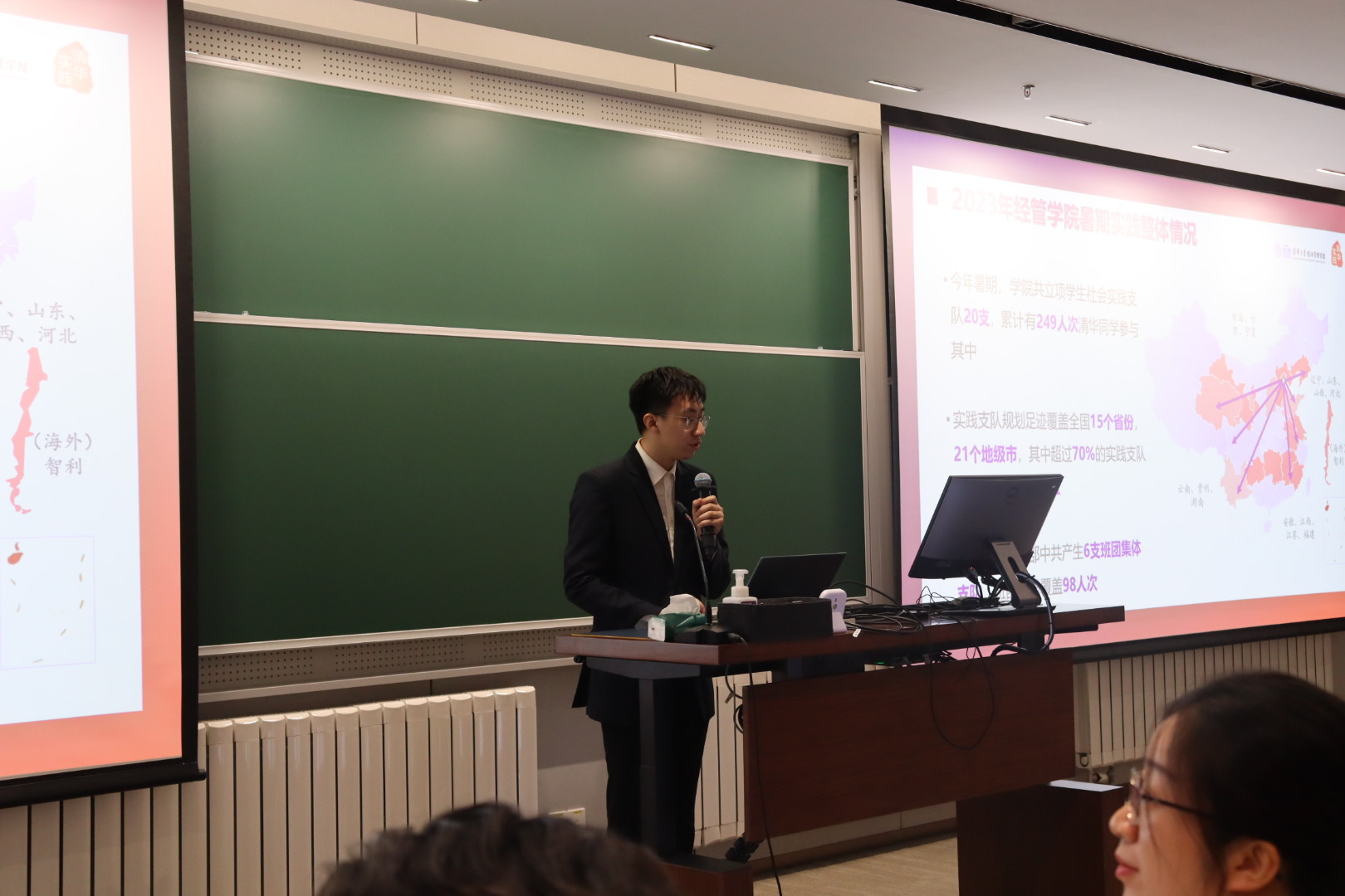 2023年学院共组织11支特色实践支队,分为“经研农道”“经智之谈”“经邦论道”“经益求精”4个方向。总结会上,各支队分方向进行了展示与问答,讲述深入乡村的故事,分享科技发展的探索,讨论社会进步的路径,传承公益服务的精神。