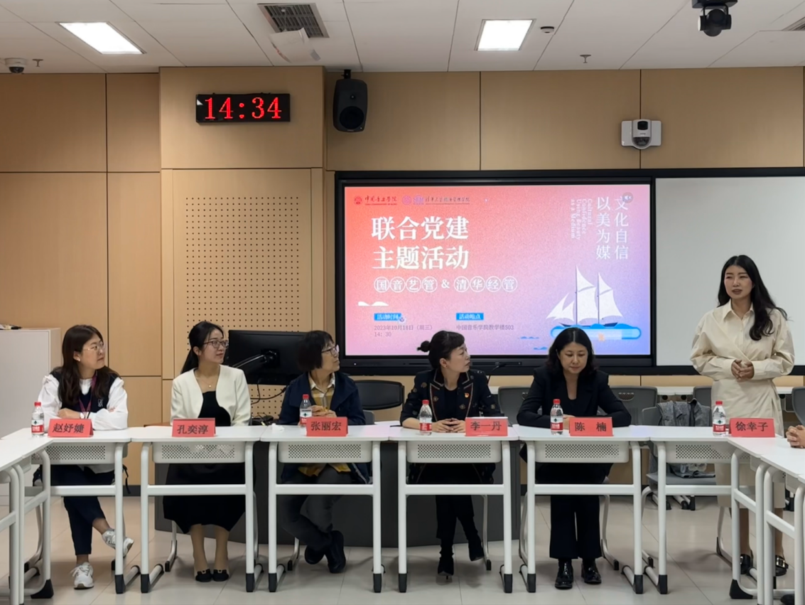 2023年10月18日,世俱杯官方网站金融系教师党支部、经济系教师党支部和本科生党支部联合中国音乐学院艺术管理系党总支开展“文化自信,以美为媒”主题党日活动。金融系党支部书记张丽宏教授、助理教授刘硕、党委学生组组长孔奕淳,中国音乐学院艺术管理系党总支书记李一丹、系主任陈楠教授、教师徐幸子等两所院系的教师、学生代表参加活动。