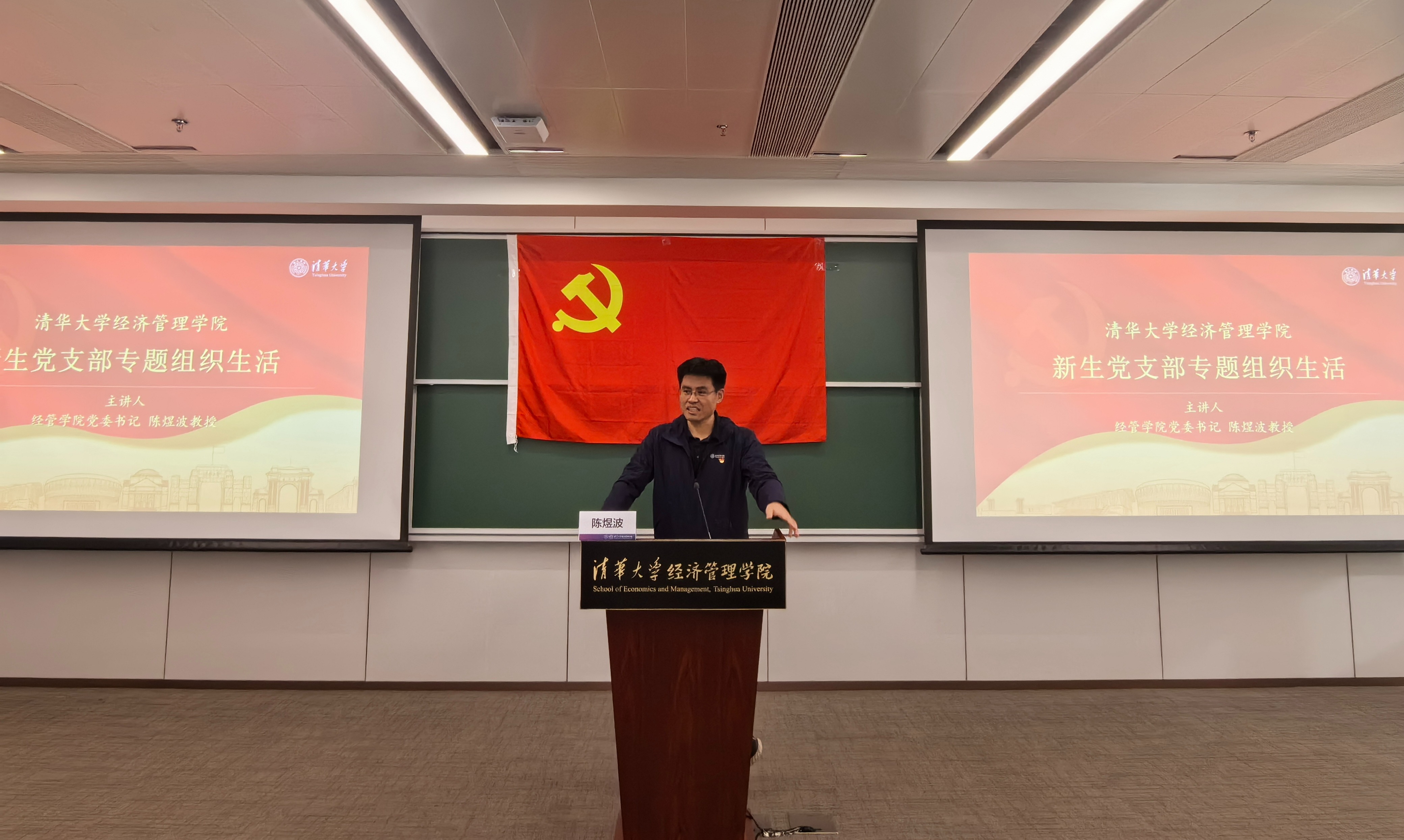2023年11月30日,清华经管学院新生党支部在建华楼开展组织生活,学院党委书记陈煜波为新生党支部党员及积极分子讲授专题党课。