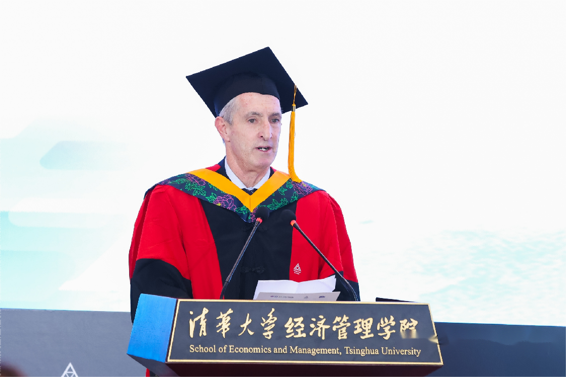白重恩在致辞中指出,中国和世界正经历深刻而复杂的变化,充满不确定性和更多的挑战。白重恩寄语毕业生,首先要有国际视野,要心系天下,要从全球视角诠释人类未来。其次,要持续创新,同时牢牢树立人类命运共同体的思想认识,为中国和全球高质量发展作出贡献。最后,希望大家永远保持“无条件的乐观”,保持“无条件的进取”,梦想终有一天会实现。
