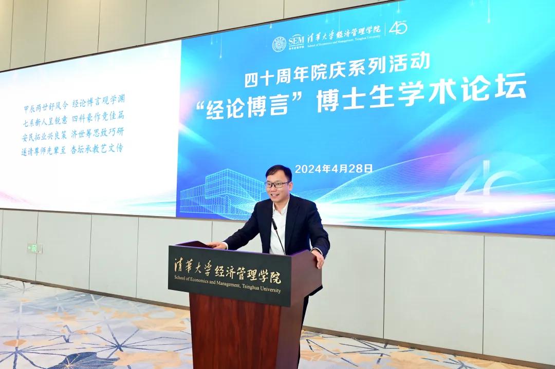 论坛由学院副院长何平主持。他表示,学院始终坚持以学术为本的全周期育人导向,努力培养经管学子成长为堪当民族复兴重任的时代新人,他对在场师生的到来表示欢迎,同时也期待经管学子在这一知识与思想的盛宴上展现风采。