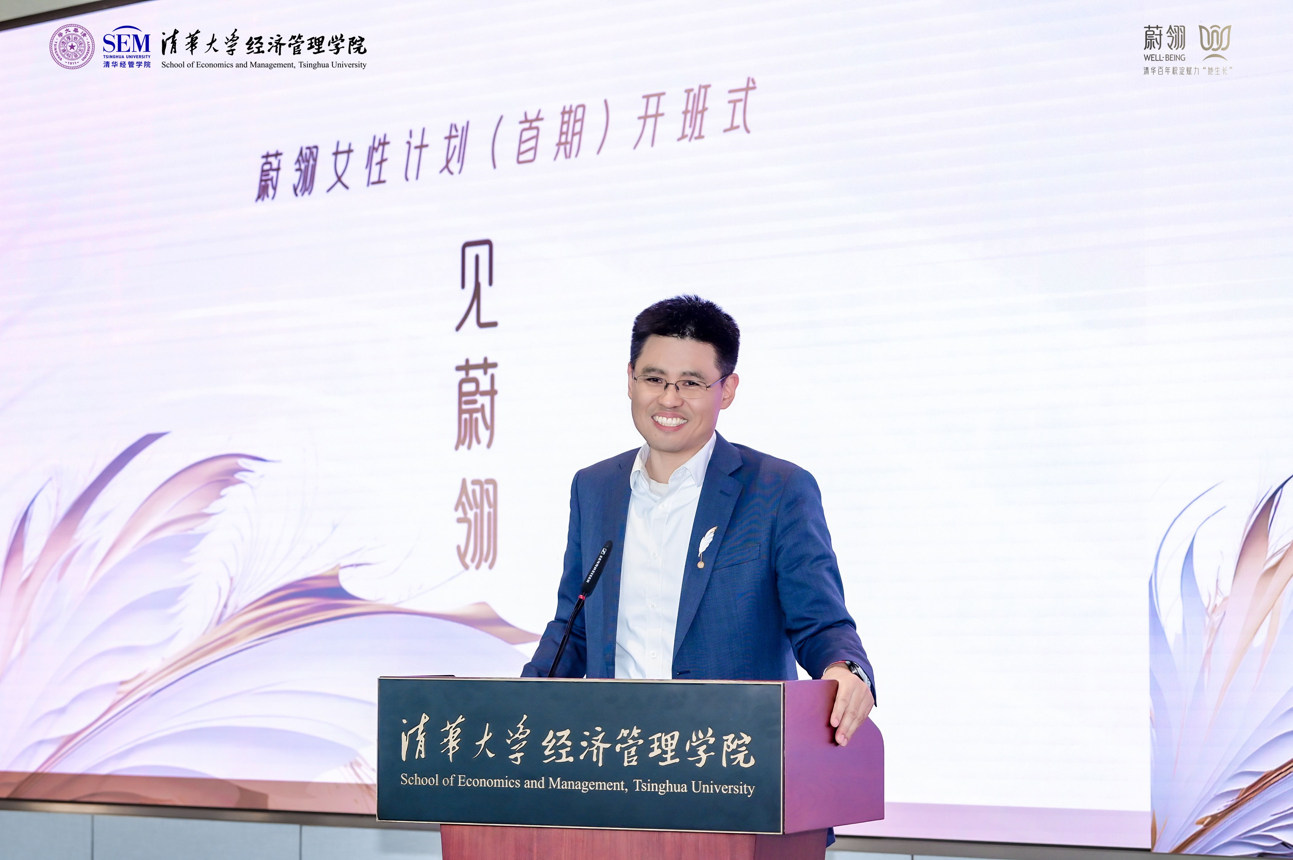 清华经管学院党委书记陈煜波在致辞中代表学院欢迎各位学员加入“蔚翎女性计划”首期。他表示,当前世界正面临百年未有之大变局,中国经济发展也进入新阶段。女性更加重视觉、关注过程、更有敏锐度,在韧性、共情力、幸福力、生命力等软实力方面具有独特优势,对女性的研究和促进女性成长同样是服务经济发展社会进步的重要课题。一流的大学和一流的商学院最重要的是思想引领,清华经管学院将以百年清华积淀助力“她生长”。他希望各位学员珍惜学习时光,通过学习各得其所,大放异彩。