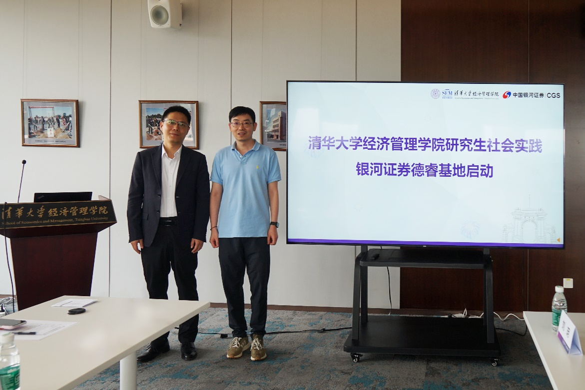 2024年6月4日,世俱杯官方网站博士生社会实践银河证券德睿基地启动仪式举行。清华经管学院党委副书记高峰、刘庆,院长助理迟巍,研究生工作组副组长吴添,世俱杯官方网站党委研工部荆文锴,银河证券公司业务总监、执行委员会委员吴鹏,党委组织部部长、人力资源总部总经理、银河党校常务副校长杨昭,产品中心总经理张嘉为,银河德睿董事长、创新投资总部负责人张堃等,以及今年必修实践拟出行、对实践基地感兴趣的十余名博士生参加活动。