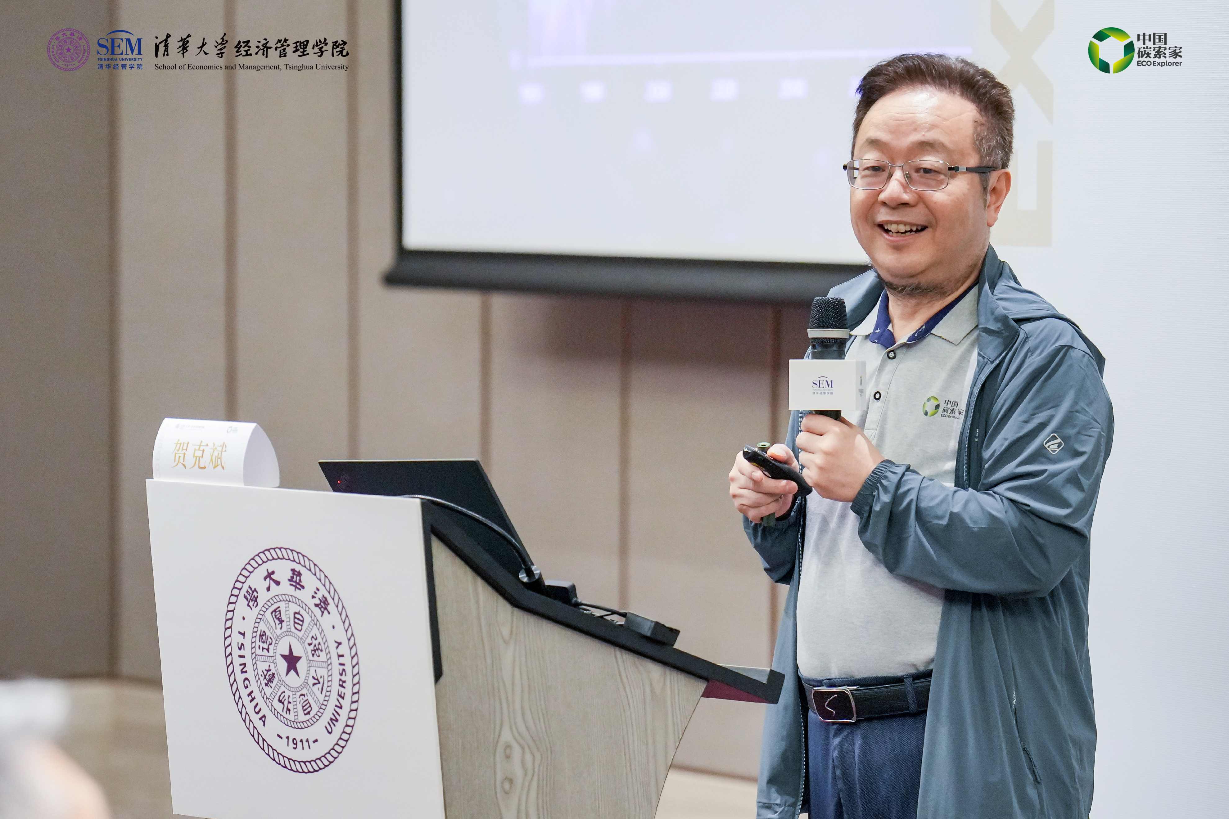 开班式后,“中国碳索家”开启“极速演讲”,贺克斌、白重恩分别主持两场主题分享。