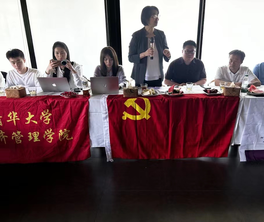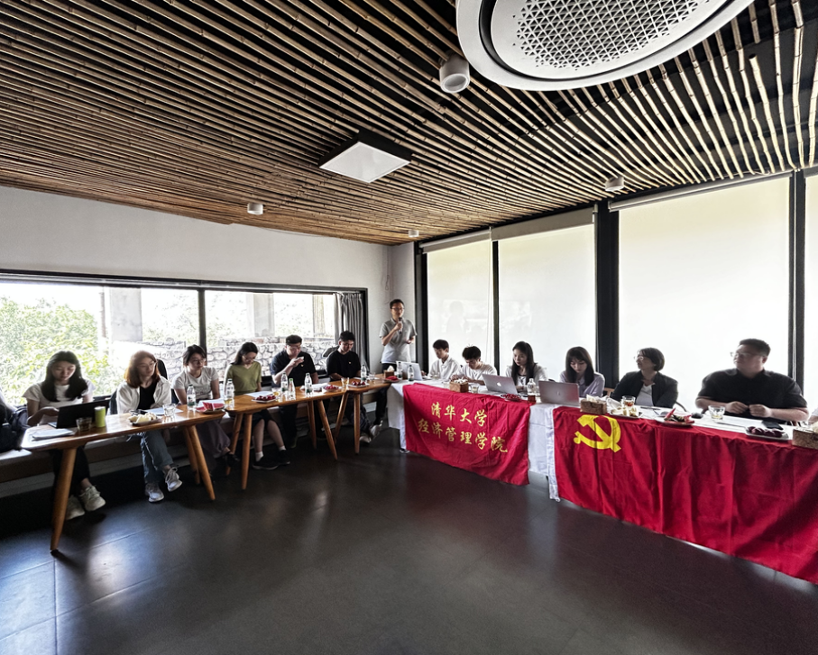经博21党支部书记马瑄忆汇报了经博21党支部建设工作,从支部专业特色、支部管理制度和工作机制、党组织建设与学术创新有机结合等角度,分享了支部建设经验,并回顾了支部的多次实践活动和调研产出。马瑄忆表示,支部鼓励党员们积极开展实践调研,切实将论文写在祖国大地上。学院党建助理宋清汇报了非全日制党支部建设工作,讲解了非全日制党支部与企业特色对接的工作机制,并介绍了以特色产业为媒介对接支部成员与实践地、与专家机构合作提升整体质量的实践调研模式。宋清介绍了本次实践的调研目标,希望通过深度对话的形式,挖掘河北省涞水县三坡镇减贫工作的宝贵经验,提炼可复制、可推广的发展模式。