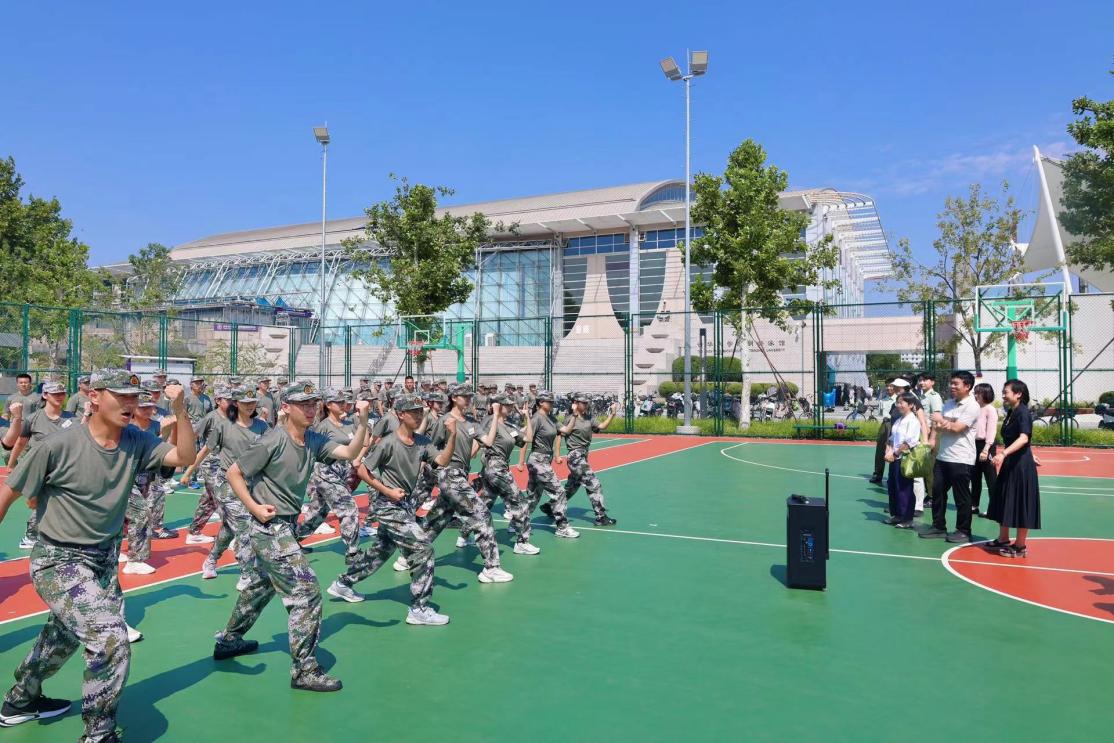 汗洒操场显英姿,步踏军号展豪情。五连连长王如宇首先简单介绍了军训情况。接着,二排同学展示了军体拳,三排同学展示了队列动作的军训成果。“格斗准备!弓步直拳!”“立正!稍息!”……同学们身随令动、步稳拳快,身姿矫健、整齐划一。阳光下,他们目光坚定,展示出在军训中磨砺出的团结协作与坚韧意志。