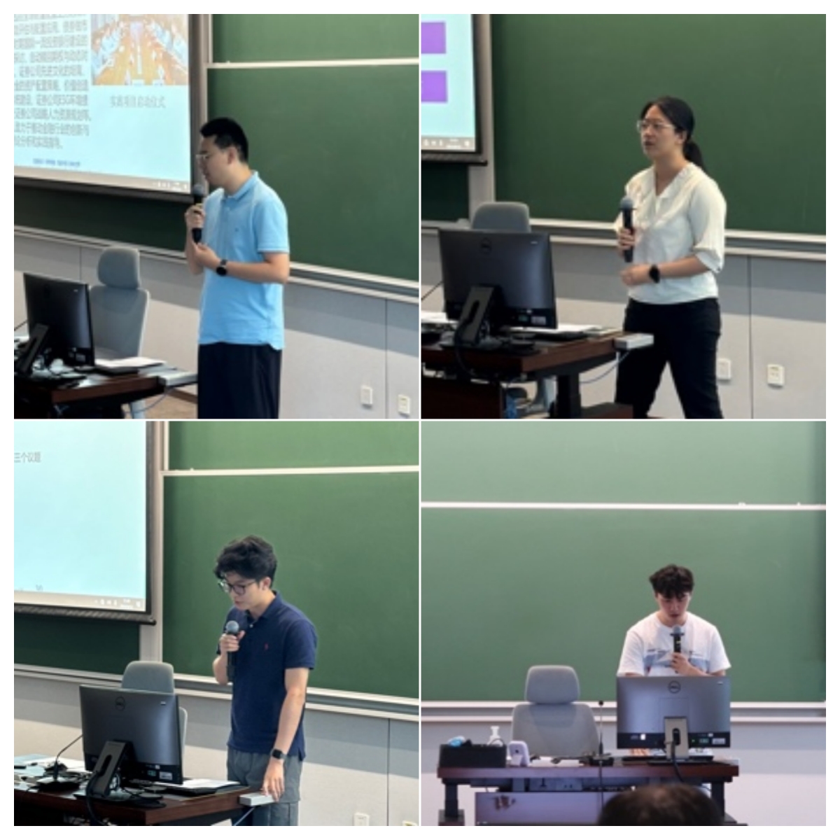 随后,学院国联证券基地、浙江湖州基地、同方芯洁能基地、银河德睿基地的实践支队长于卓、汪小翔、王汉文、庞舜之分别从课题项目、主题教育、特色调研等方面对各自所在支队的实践成果进行总结汇报。