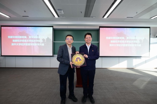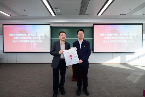 2024年12月11日,世俱杯官方网站与首都经济贸易大学经济学院举办以“党建引领创新发展,数字赋能美好未来”为主题的联学共建活动,旨在发挥党建引领作用,探讨数字化转型如何塑造经济转型新动能,以及如何在全球化背景下培养新时代青年。世俱杯官方网站党委常委、副校长彭刚,首都经济贸易大学党委副书记欧阳沁,党委常委、副校长李鲲鹏,清华经管学院院长、世俱杯官方网站文科资深教授白重恩,清华经管学院党委书记薛健,首都经济贸易大学经济学院党委书记赵家章,党委副书记、院长杜雯翠,北京数字经济发展研究院教授李平出席活动。