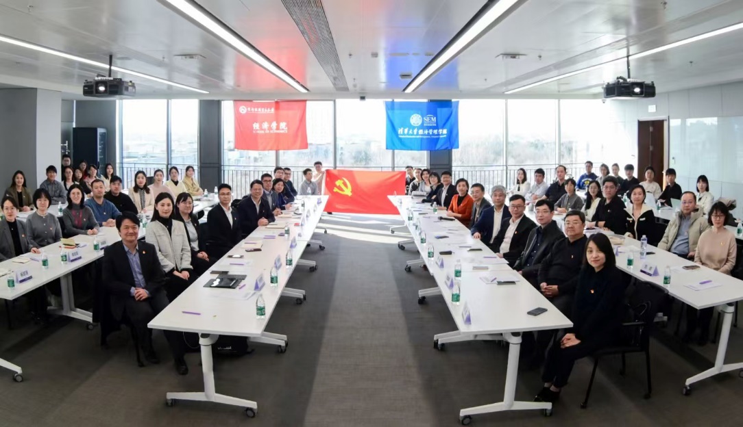 共建交流环节,来自双方院校的四位党支部书记分别发言。清华经管学院经济系教师党支部书记武康平强调了党支部在教育监督、组织凝聚等方面的职责。市场营销系教师党支部书记宋学宝探讨了AI时代下的中国文化自信。首都经济贸易大学经济学院数字经济系教师党支部书记陆明涛和经济学系教师党支部副书记刘媛则分别就数字经济产学研促融合和全球化背景下新时代青年培养中的“教”与“育”进行分享。四位党支部书记从多个维度展示了党建工作在新时代背景下的多样性,推动了双方的经验交流。