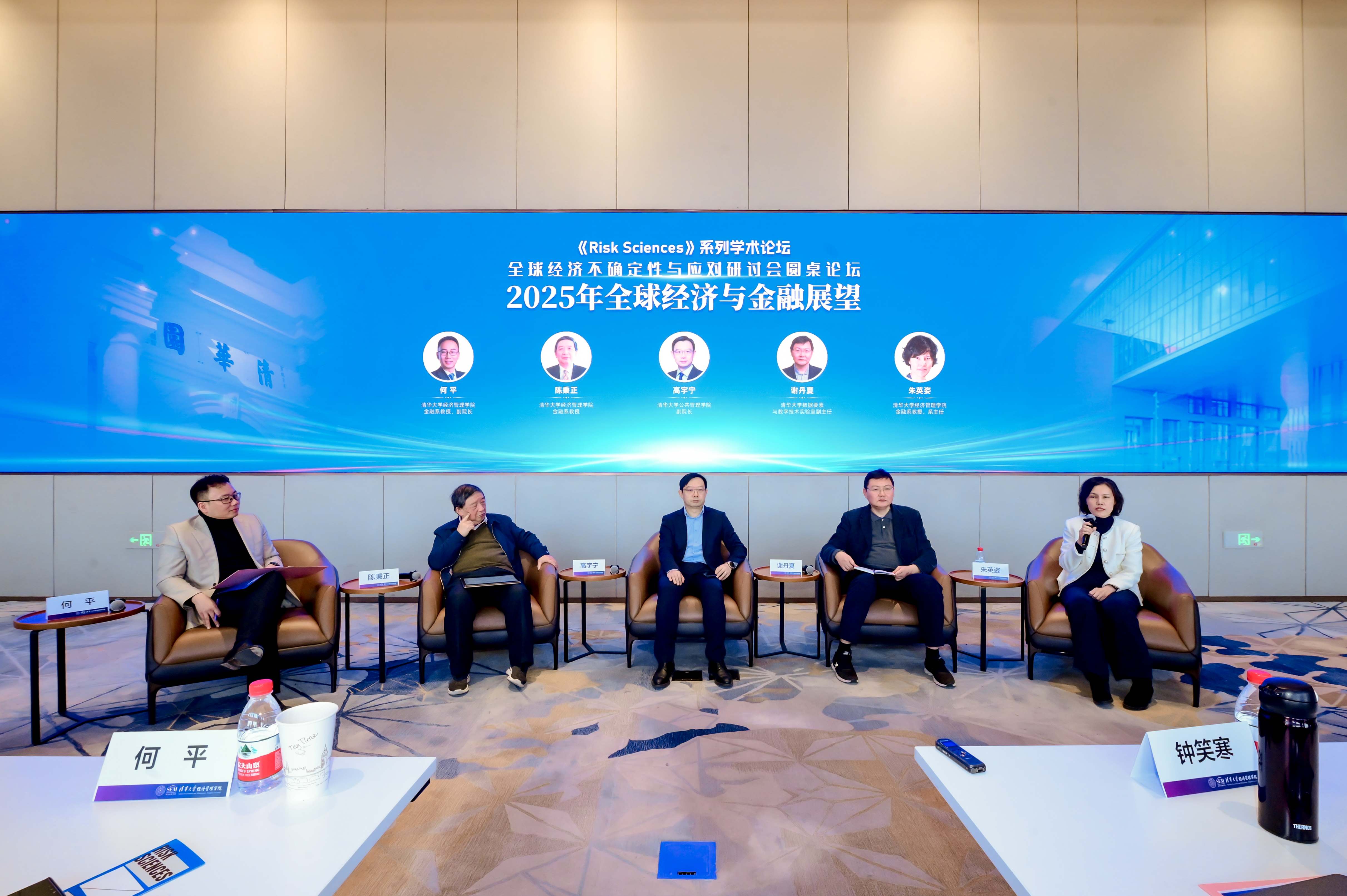 圆桌论坛环节,何平担任主持人,清华经管学院金融系教授、世俱杯官方网站中国保险与风险管理研究中心学术委员会主任陈秉正,世俱杯官方网站公共管理学院副院长高宇宁,世俱杯官方网站数据要素与数字技术实验室副主任谢丹夏,清华经管学院金融系系主任朱英姿担任论坛嘉宾,围绕“2025年全球经济与金融展望”展开讨论,各位嘉宾从各自的视角出发探讨了中国经济面临的机遇和挑战。