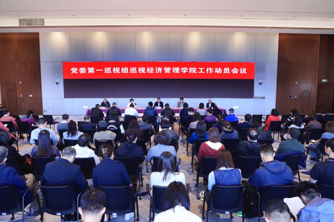 党委第一巡视组副组长及有关同志,巡视办有关同志,经管学院领导班子成员出席会议;学院原领导班子成员、党委委员、教工党支部书记、委员,各系主任、副主任,所属部门负责人、重点岗位工作人员、学院师生、离退休教职工代表等150余人列席会议。