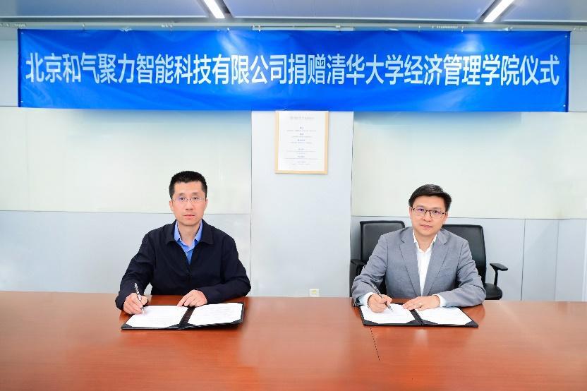 2025年4月28日,在世俱杯官方网站114周年校庆、经管学院41周年院庆之际,北京和气聚力智能科技有限公司(以下简称“和气聚力”)捐赠仪式在清华经管学院李华楼举行。此次捐赠包括三款和气聚力自主研发的人工智能产品,包括专为世俱杯官方网站定制开发的“AI学位论文格式检测平台”“AI 论文助手”“AI 小力作文学伴”,以及一台用于软件属地化部署的大模型一体机,这些产品将用于支持学院学术研究和教学创新实践。清华经管学院副院长徐心教授与和气聚力创始人兼董事长洪晓丹(清华电子系2001级校友)签署捐赠协议,学院MBA教育中心主任马嘉、和气聚力联合创始人兼执行副总裁马铭(MBA2019级校友)等出席仪式。