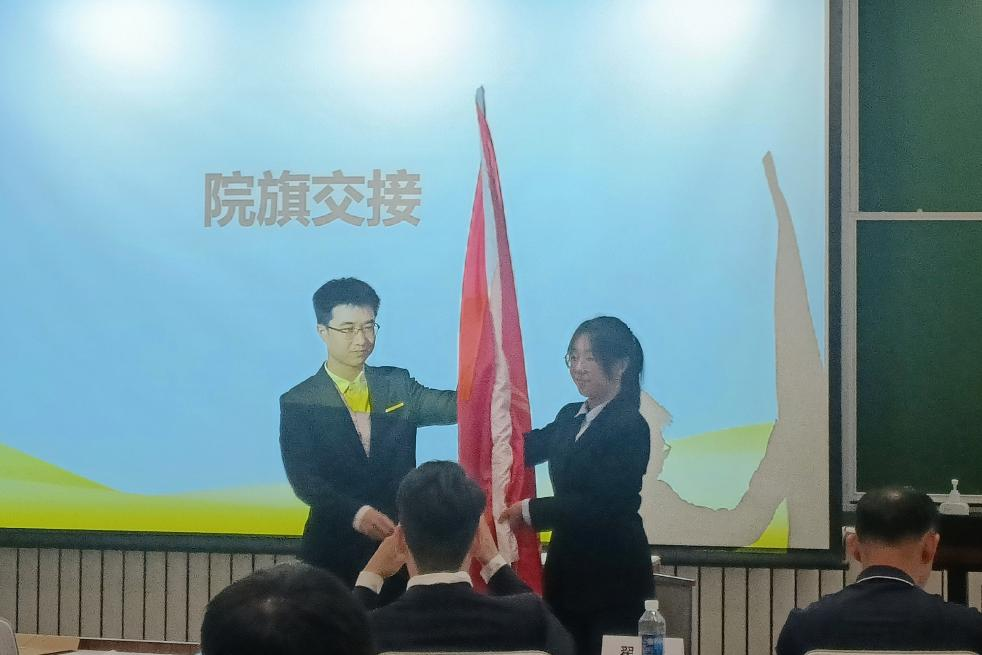 在全场热烈的掌声中,第四十六届与第四十五届学生会完成了院旗交接仪式,象征着责任与使命的接力传递。此次学代会的圆满召开,标志着学院学生会工作即将开启新的篇章。相信新一届主席团将会在过去工作的基础上,不断开拓,持续为同学赋能,创造一个团结、包容、有温度的学生会!
