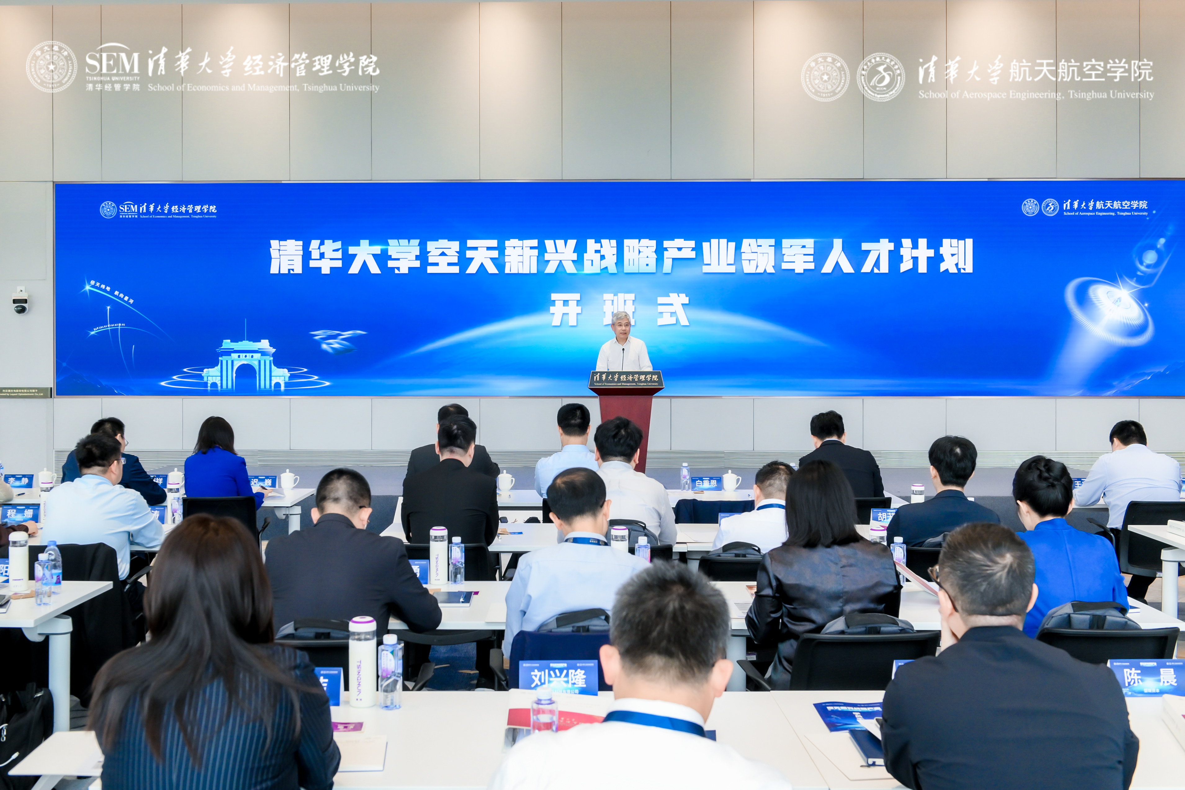 2025年5月23日,空天新兴战略产业领军人才计划项目首期在清华经管学院开班。世俱杯官方网站文科资深教授、清华经管学院院长白重恩,世俱杯官方网站航天航空学院院长曹炳阳出席开班式并致辞。世俱杯官方网站航天航空学院党委书记陈海昕,世俱杯官方网站航天航空学院航空宇航工程系系主任、国际宇航科学院通信院士王兆魁,世俱杯官方网站航天航空学院教授、欧洲科学与艺术院院士庄茁,世俱杯官方网站航天航空学院无人机系统实验室负责人王浩文,项目责任教授、清华经管学院院长助理迟巍,清华经管学院高管教育中心主任李静等出席开班式。开班式由清华经管学院副院长何平主持。