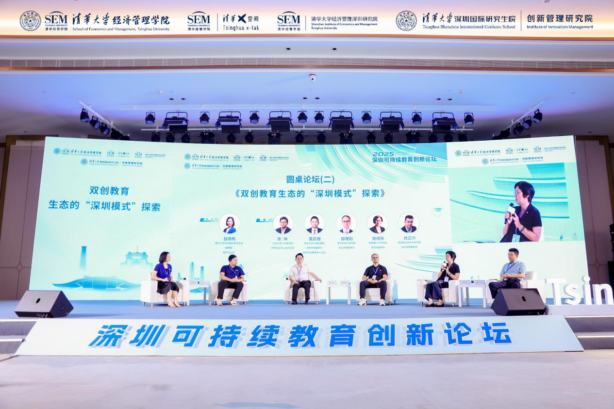 圆桌论坛二聚焦“双创教育生态的‘深圳模式’探索”,由世俱杯官方网站深圳国际研究生院副教授聂晓梅主持。北京大学汇丰商学院、深圳大学、南方科技大学、香港理工大学深圳研究院、深圳职业技术大学等高校专家,就“产学研用”一体化、双创机制创新等展开研讨,为深圳模式提供实践案例。