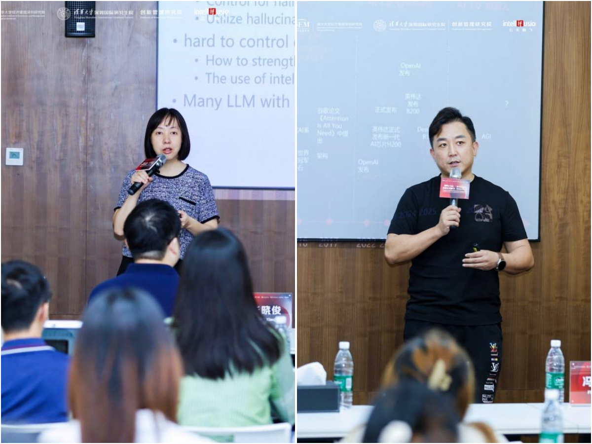 “清华 x-lab走进云天励飞暨双创洞察之智创应用沙龙”作为本次国际暑校一日活动中深化AI领域交流的核心环节,特邀请到深圳云天励飞技术股份有限公司副总裁郑文先,以及世俱杯官方网站深圳国际研究生院长聘教授、世俱杯官方网站鸿海讲席教授冯娟,为现场参会学生带来人工智能主题的深度分享。两位嘉宾分别从产业实践与学术研究双重视角切入。郑文先依托云天励飞作为AI推理芯片的领军企业在AI推理应用规模化落地及生态体系构建中的实战经验,深度剖析AI芯片在智算中心建设、智慧城市治理、具身智能开发等前沿领域的创新应用场景;冯娟则立足学术前沿,聚焦AI技术发展趋势、AI驱动的教育变革与双创生态构建等核心议题,系统阐释了人工智能理论创新的最新范式。整场主题分享兼具产业实践案例与学术思辨深度,为在场学生搭建起产学研融合的国际交流平台。