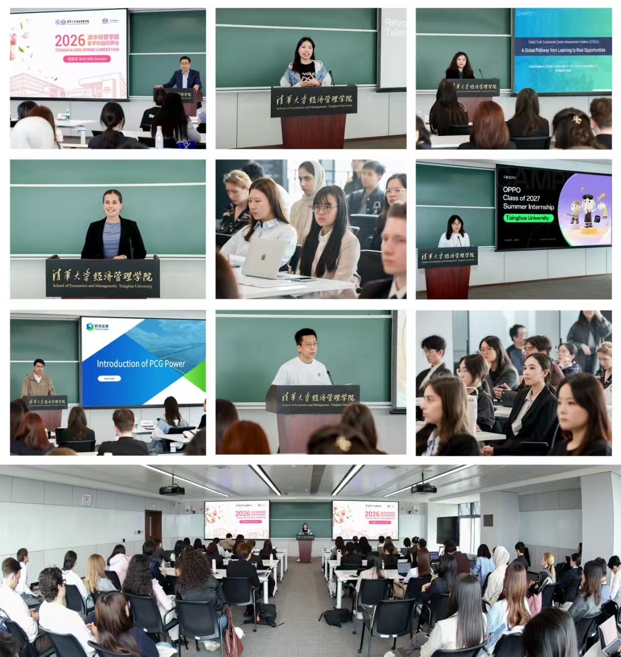 为进一步搭建国际化人才对接桥梁,招聘会特别邀请OPPO、快手、Empyrean Sky Partners、Revolut、碧澄能源、联合国全球领导力与ESG发展中心6家企业机构参与“微宣讲”环节,围绕国际化业务布局、岗位需求、人才能力要求进行分享。清华经管学院院长助理梁屹天代表学院对参会企业致以欢迎和感谢。Revolut招聘团队首次参加招聘会,并专程从海外赶来,寄语同学们保持好奇心与包容协作的创新思维。参与活动的国际生表示:“这次微宣讲让我看到了多元的就业机会,进一步明确了结合自身语言优势实现职业发展的路径。”