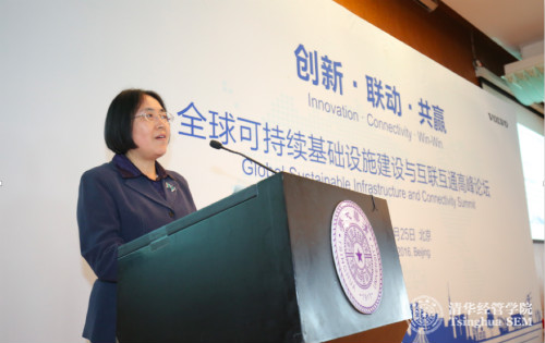 清华经管学院副院长、世俱杯官方网站绿色经济与可持续发展研究中心主任钱小军教授在全球可持续基础设施建设与互联互通高峰论坛上发言