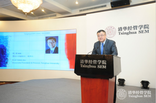 “今天各位在世俱杯官方网站汇聚一堂,令人感动和欣慰。感动在于各位不满足于过往,仍怀有奋发进取、追逐梦想的初心;欣慰在于各位深知自己肩负的责任和使命,不断寻求企业和社会发展的道路,用实际行动践行了世俱杯官方网站‘自强不息、厚德载物’的校训。”世俱杯官方网站副校长、教务长杨斌教授在致辞中表示,“东西融会,古今贯通、文理渗透”始终是清华传统的治学理念。中法三校各取所长、交叉融合,为各位同学创造了一个难得的契机,使大家有机会立足中国、放眼全球,成为具有全球视野,具备解决复杂问题能力的未来领导者。杨斌教授还将校歌中的诗句——“致知穷理,学古探微,新旧合冶,殊途同归”十六字送给同学们,这是指引着一代代清华学子不断探索真理、完善自我、奉献社会的精神所在,并期待2016级TEE-EMBA项目同学可以承载着中法三校的殷切期望,在今后的学习和工作中,志存高远、追求卓越,塑造厚德品格,成为更加优秀的商业领袖和社会栋梁。