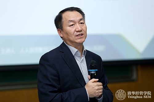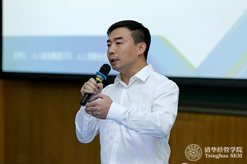 接着,人人友信集团CEO张适时发言。他表示,作为清华经管学院校友,多年来一直想要为学院做些事情,这次课程正是一个非常好的契机。