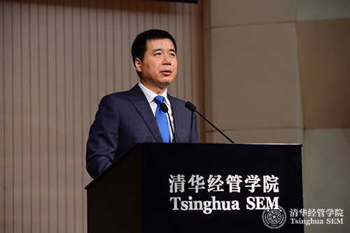 在学生发言环节,EMBA2010级A班的王爱国(青岛国恩科技发展有限公司董事长兼总经理)作为老生发言。他分享了自己在清华经管EMBA学习的感受,“通过高滨老师《金融与财务原理》的系统学习,让我真正懂得并深刻理解了资本市场和金融杠杆对实体经济的助推作用,并启动了自己的企业上市,实现了真正意义上的学以致用。”